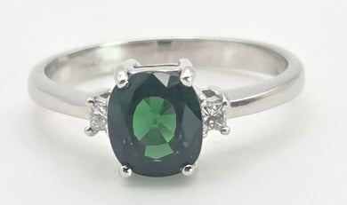2491 Vintage 18ct White Gold Chrome Diopside Natural Diamonds Dress Ring