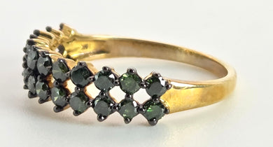 2551; Vintage 9ct Gold 24 Green Diamonds Tiered Dress/Stacker Ring