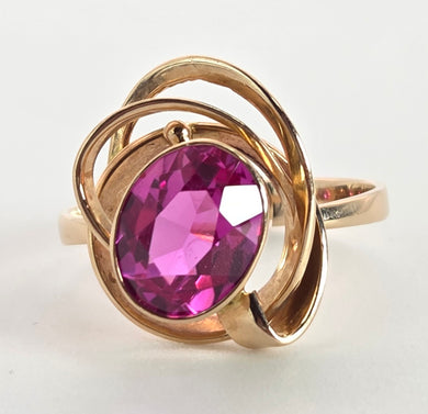2575: 14ct Gold Large Pink Sapphire Solitaire Ring