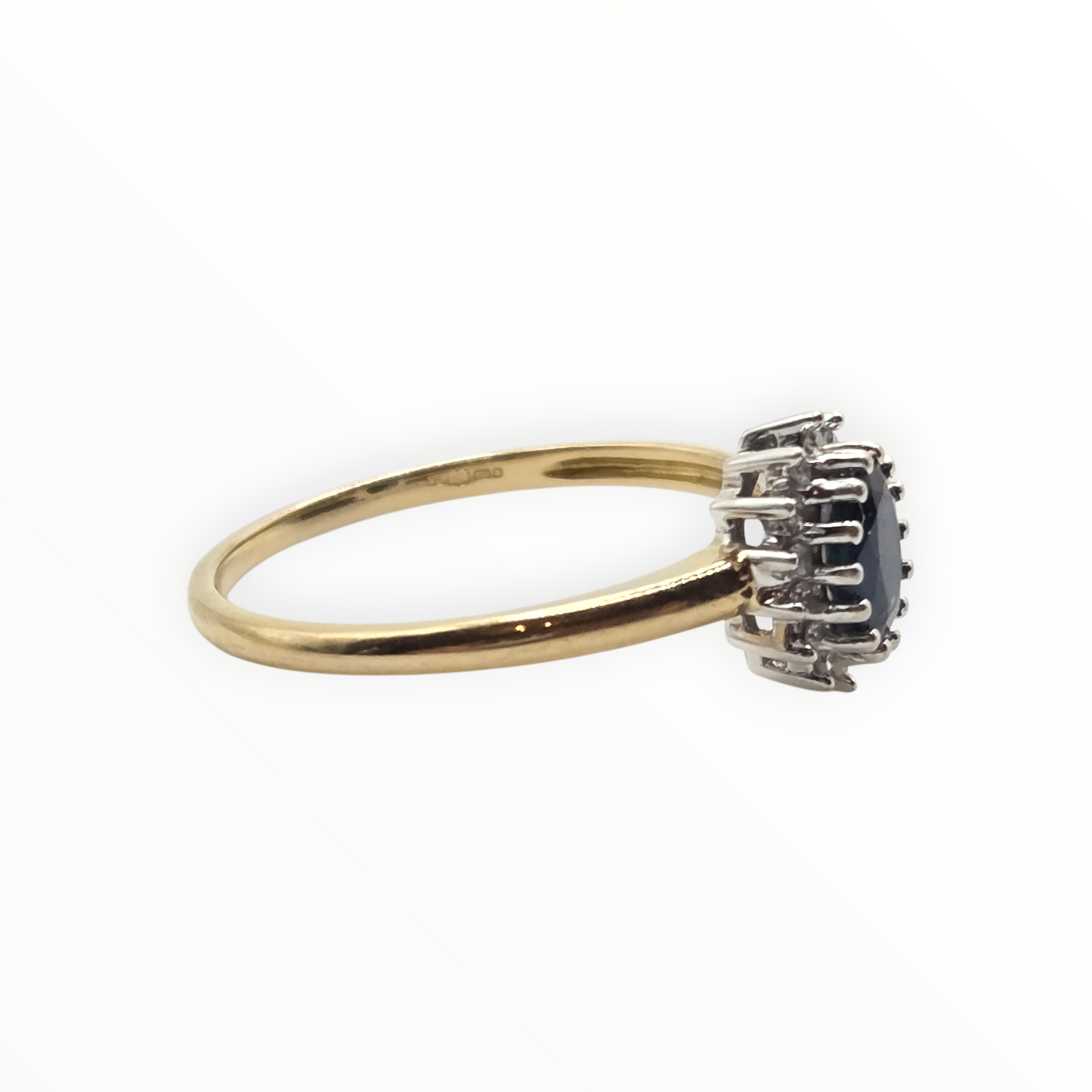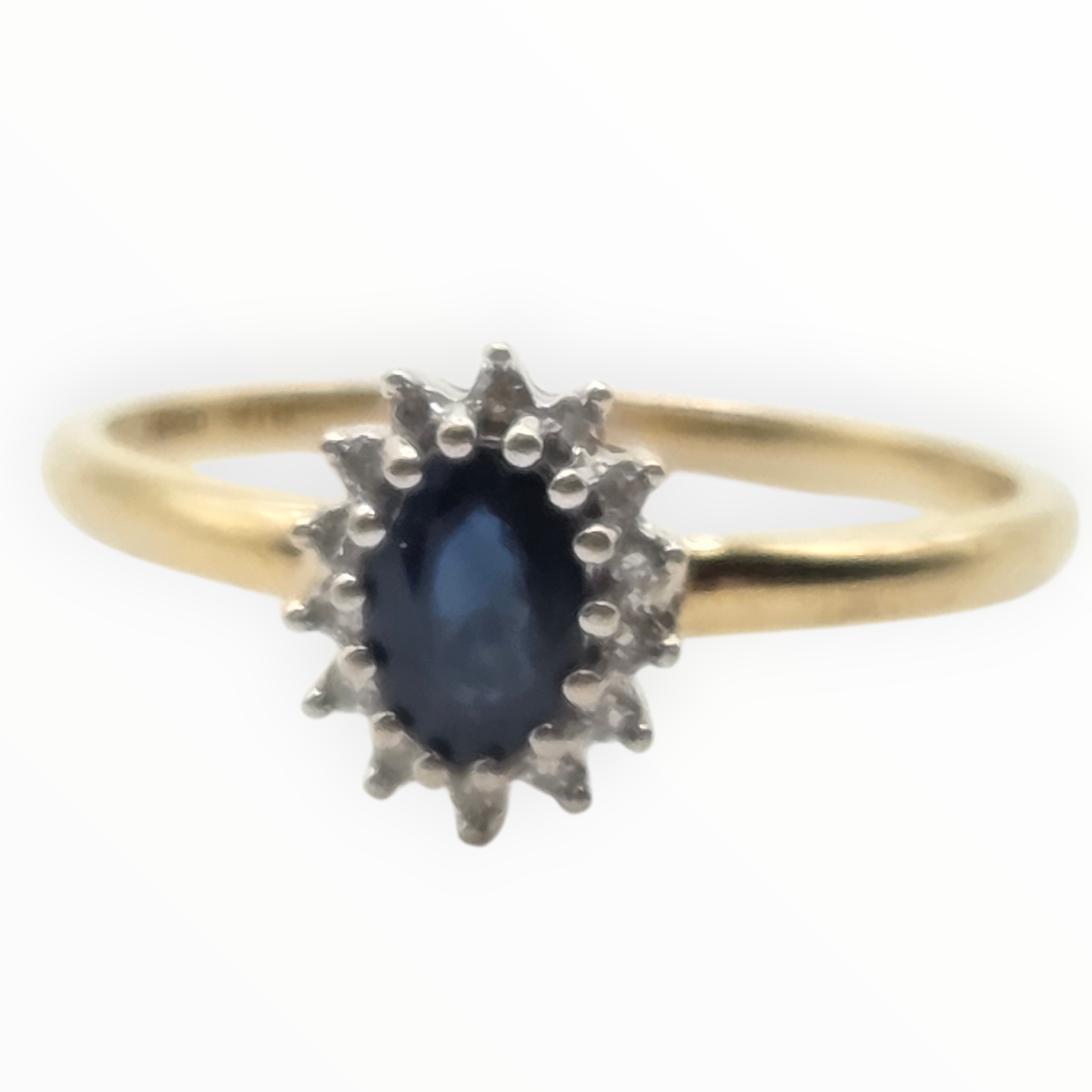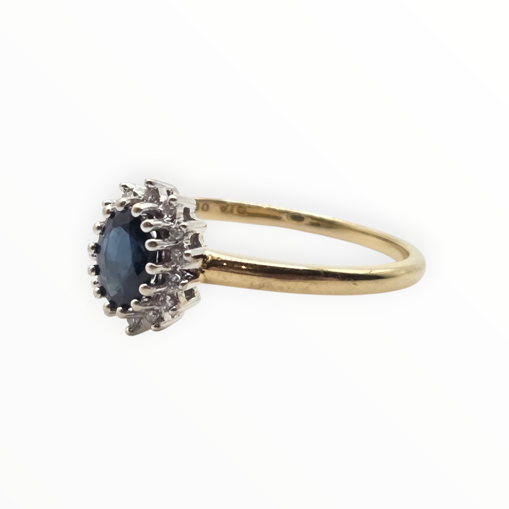 2762: Vintage 18ct Gold Blue Sapphire 16 Natural Diamonds Daisy Cluster Ring