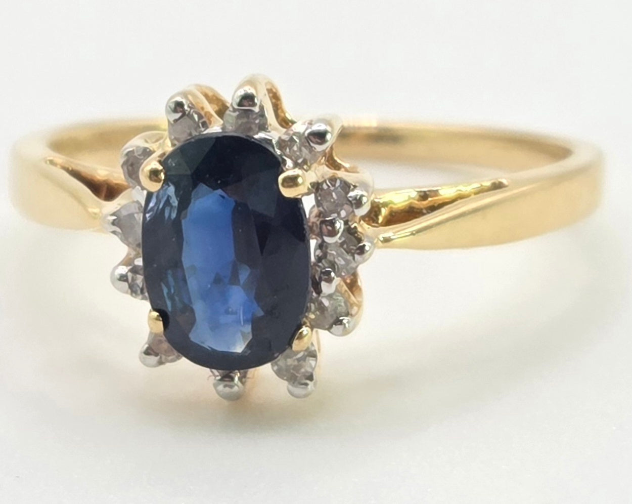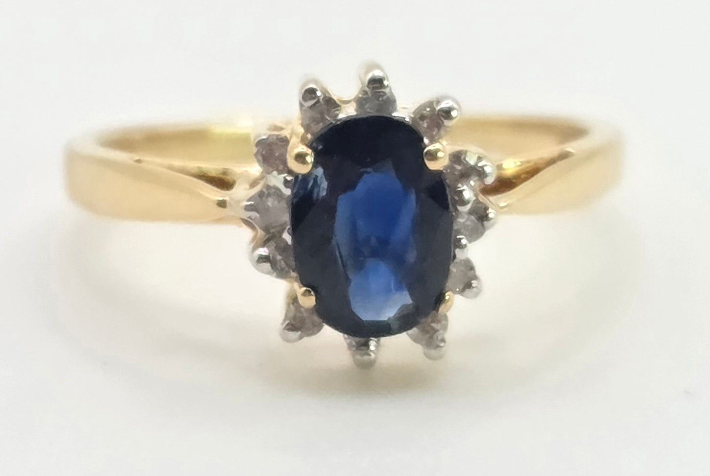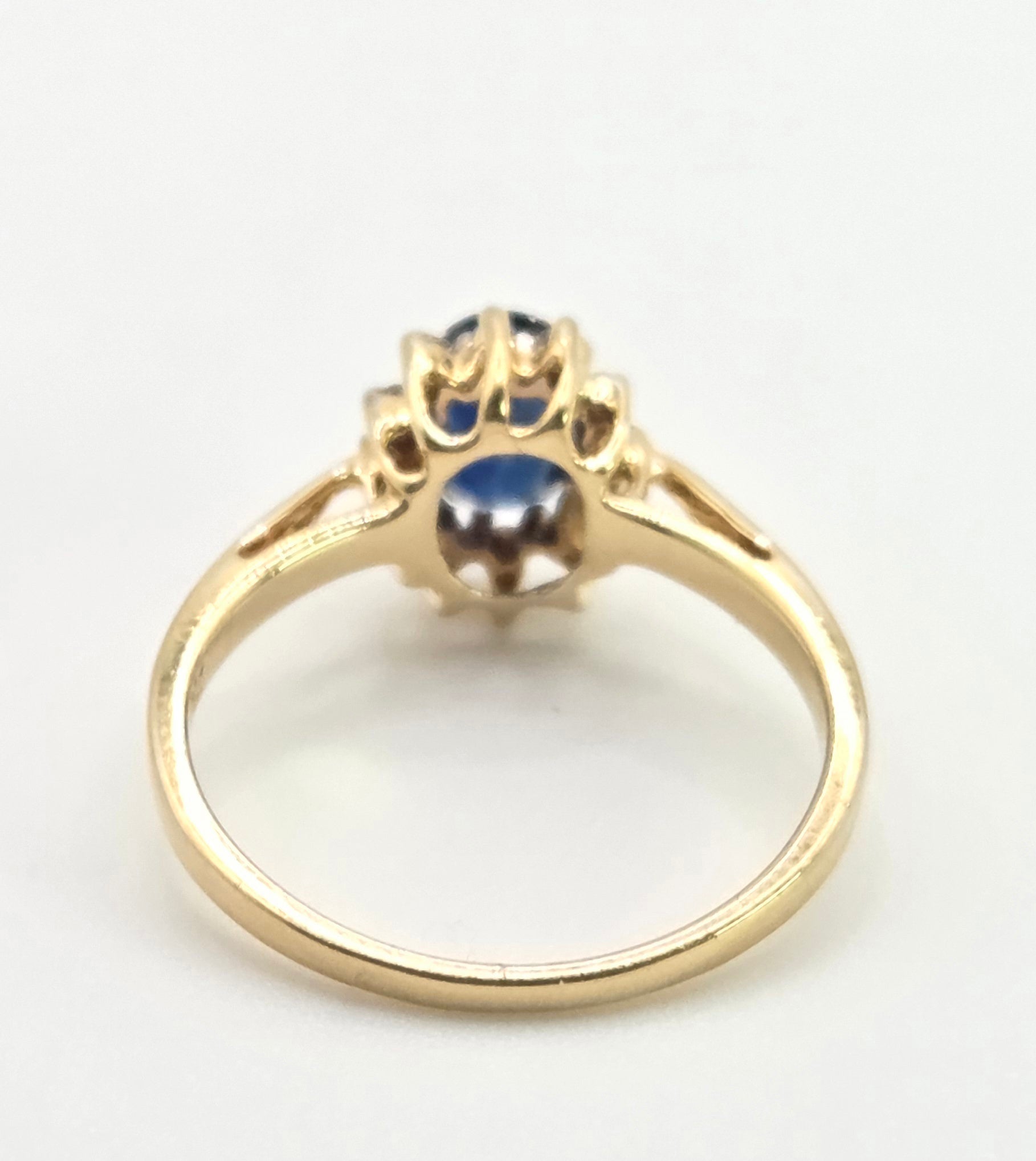 3118: Vintage & Petite 18ct Gold Cornflower Blue Sapphire 12 Diamonds Cluster Ring