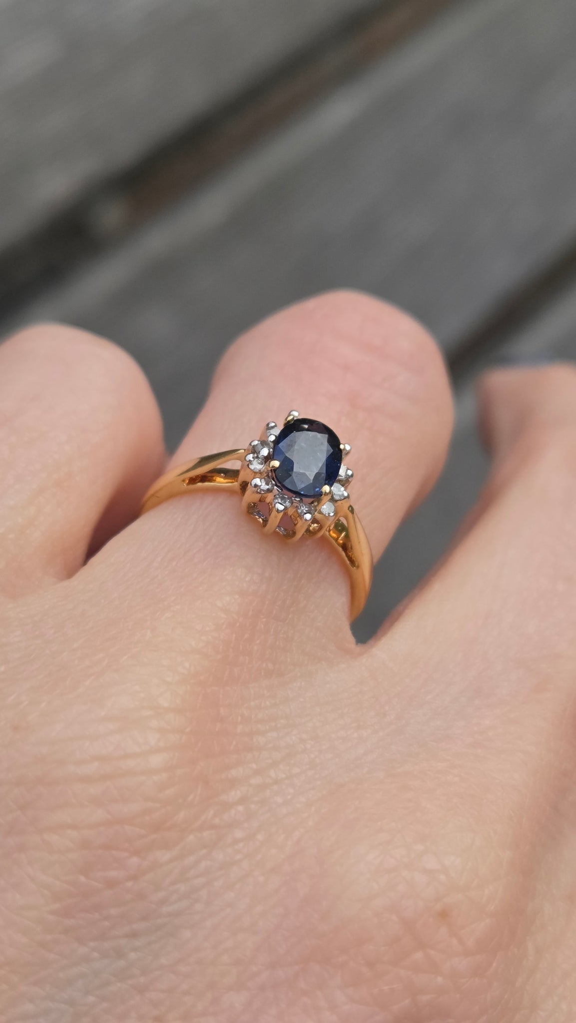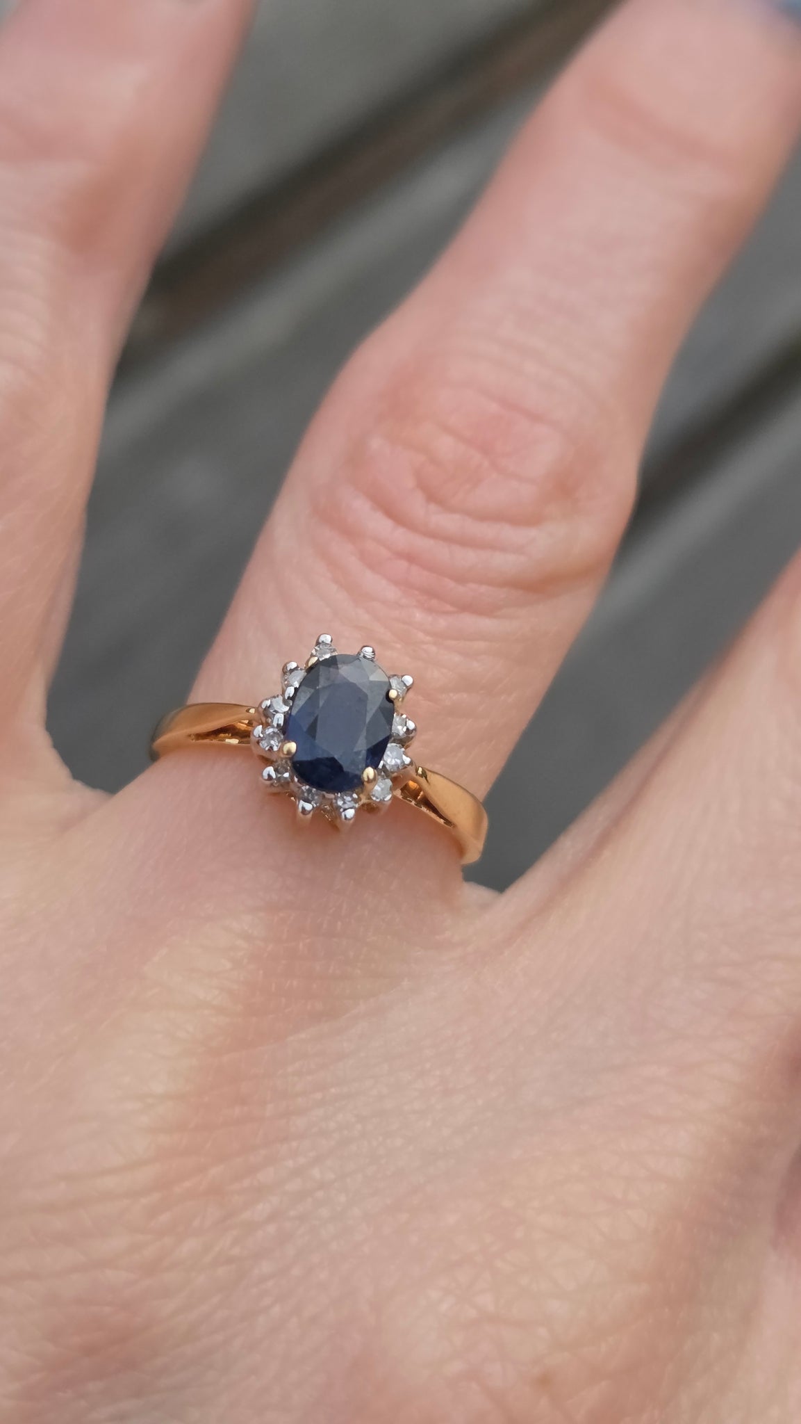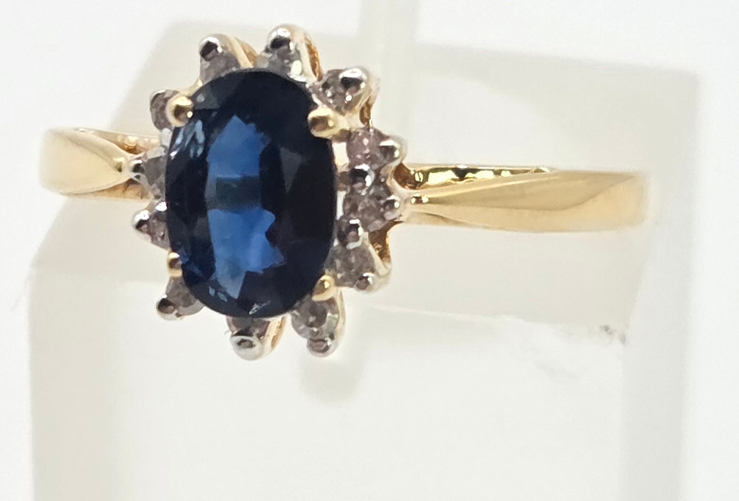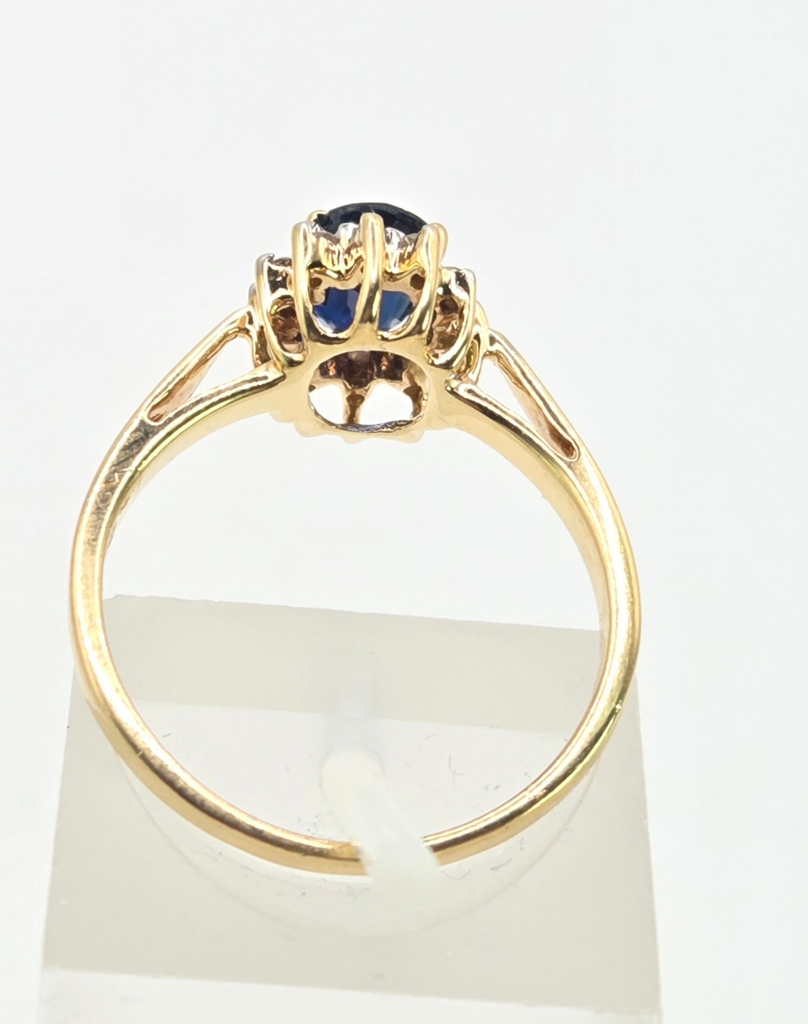 3118: Vintage & Petite 18ct Gold Cornflower Blue Sapphire 12 Diamonds Cluster Ring