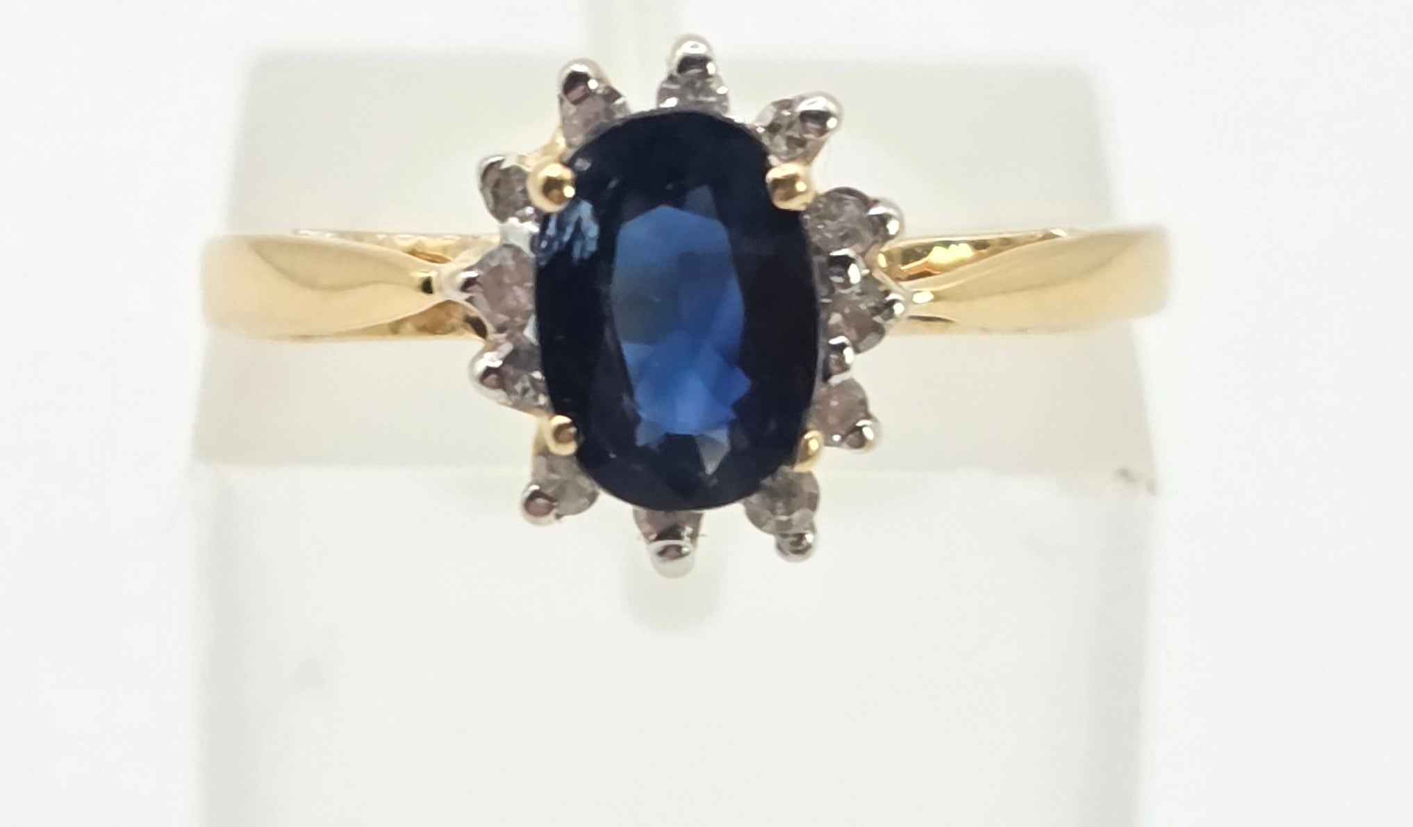 STONES: A sapphire and twelve diamonds (0.12ct)
