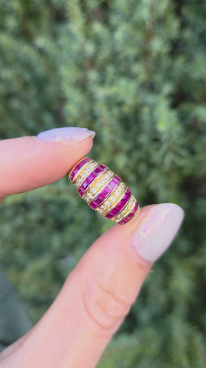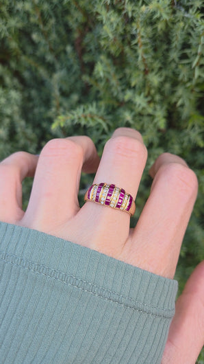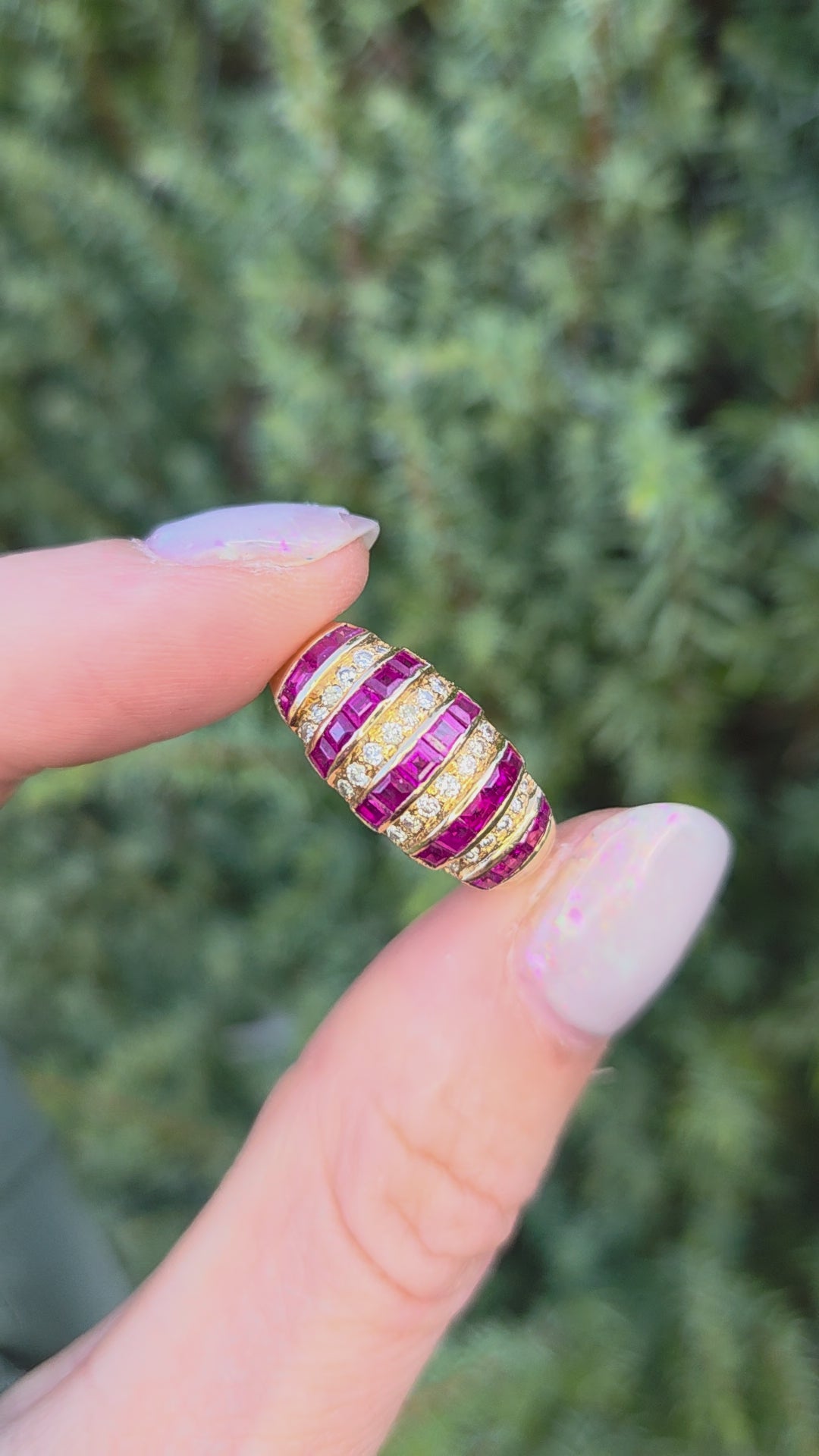 6214 Vintage: 18ct Gold Art Deco Style Rubies Diamonds Cocktail Ring