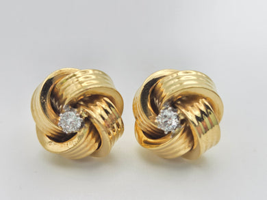 2288 Vintage; Classic 18ct Gold Diamonds (0.2ct) Knot Earrings- From 1971