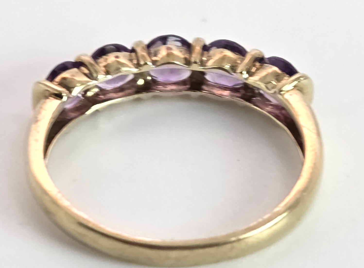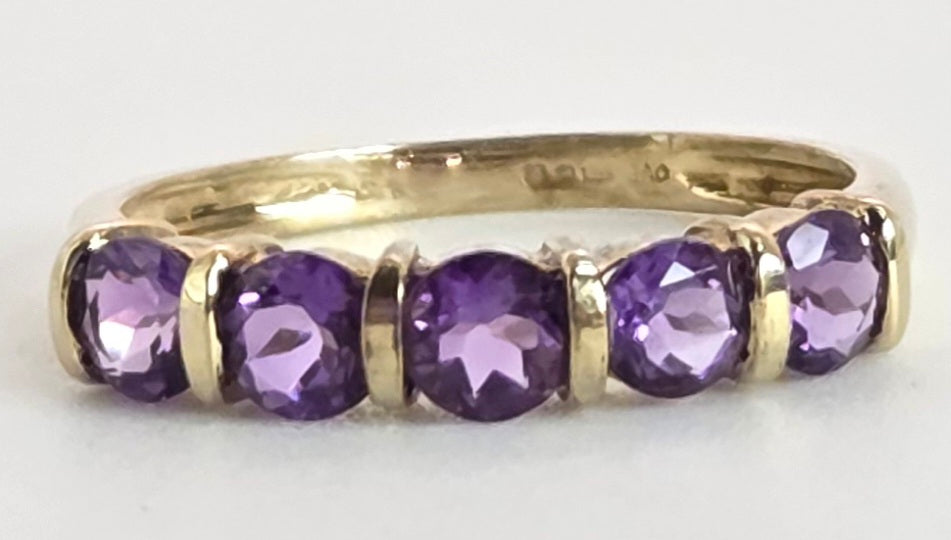 2548: Vintage: 9ct Gold 5 Lilac Amethysts Dress/Stacker Ring