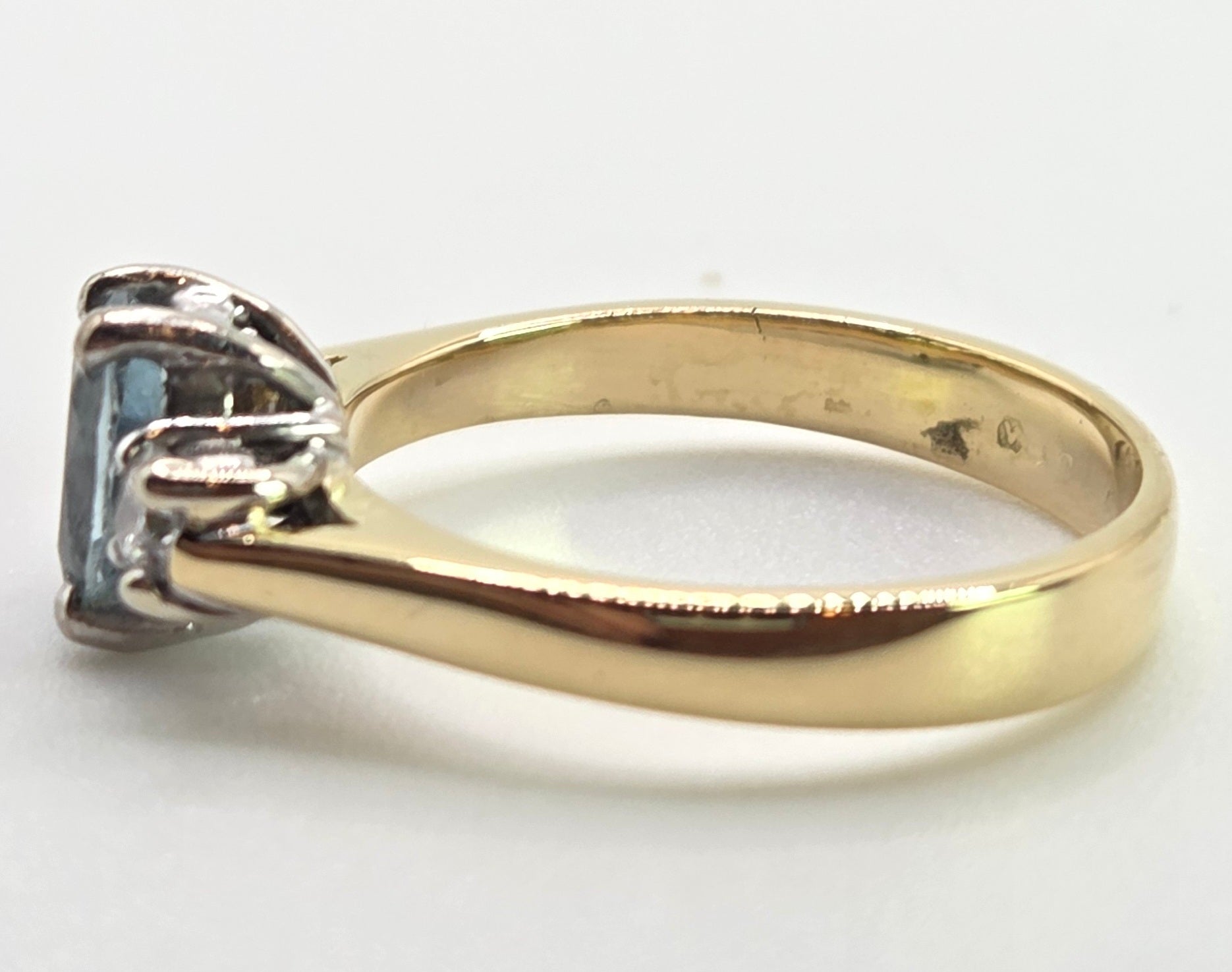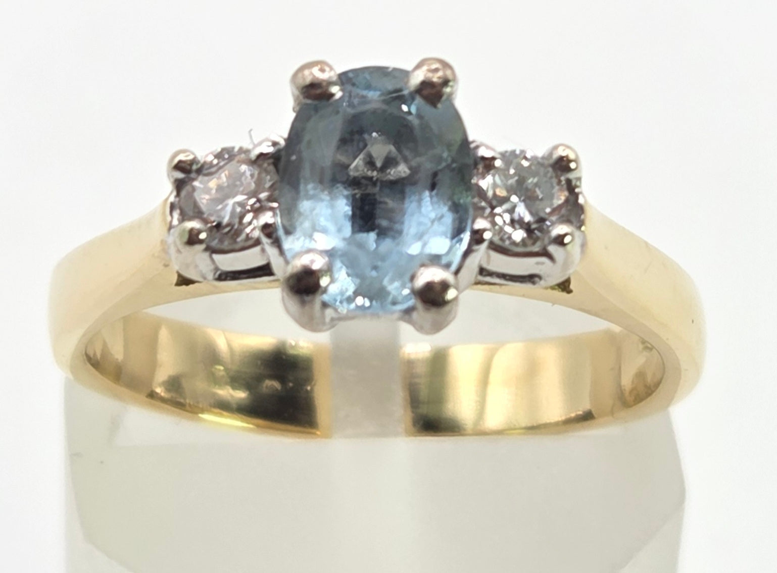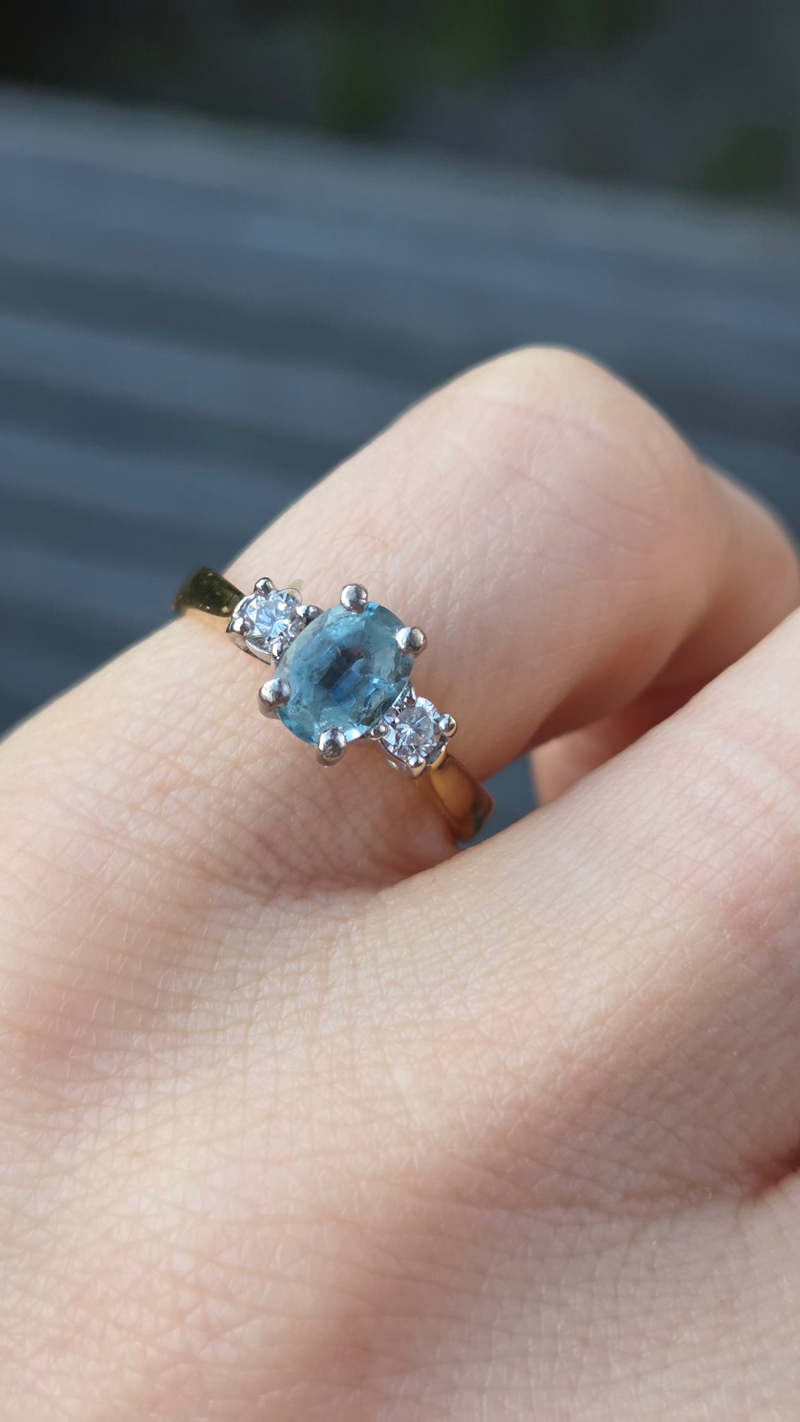 STOCK CODE: 2012- Rich blue aquamarine showcased by sparkling natural round cut diamonds. Supplied with an Independent gemmologist appraisal.