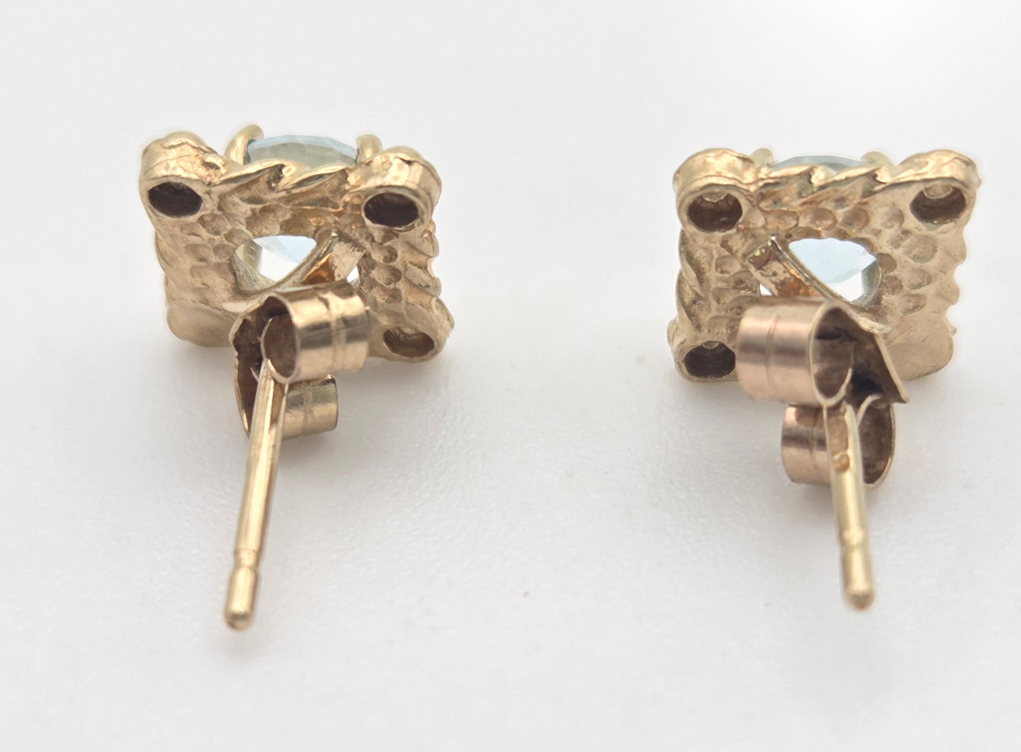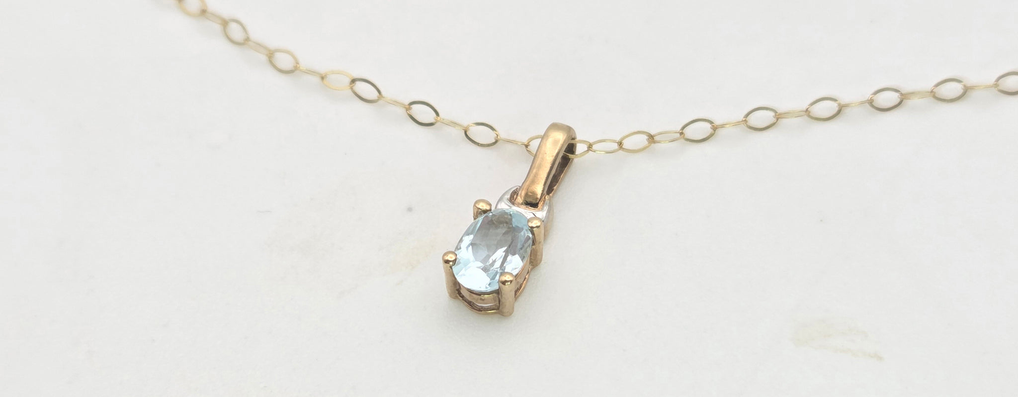 1118 Vintage: Petite 9ct Gold Swiss Blue Topaz Necklace, Pendant, Earrings Set