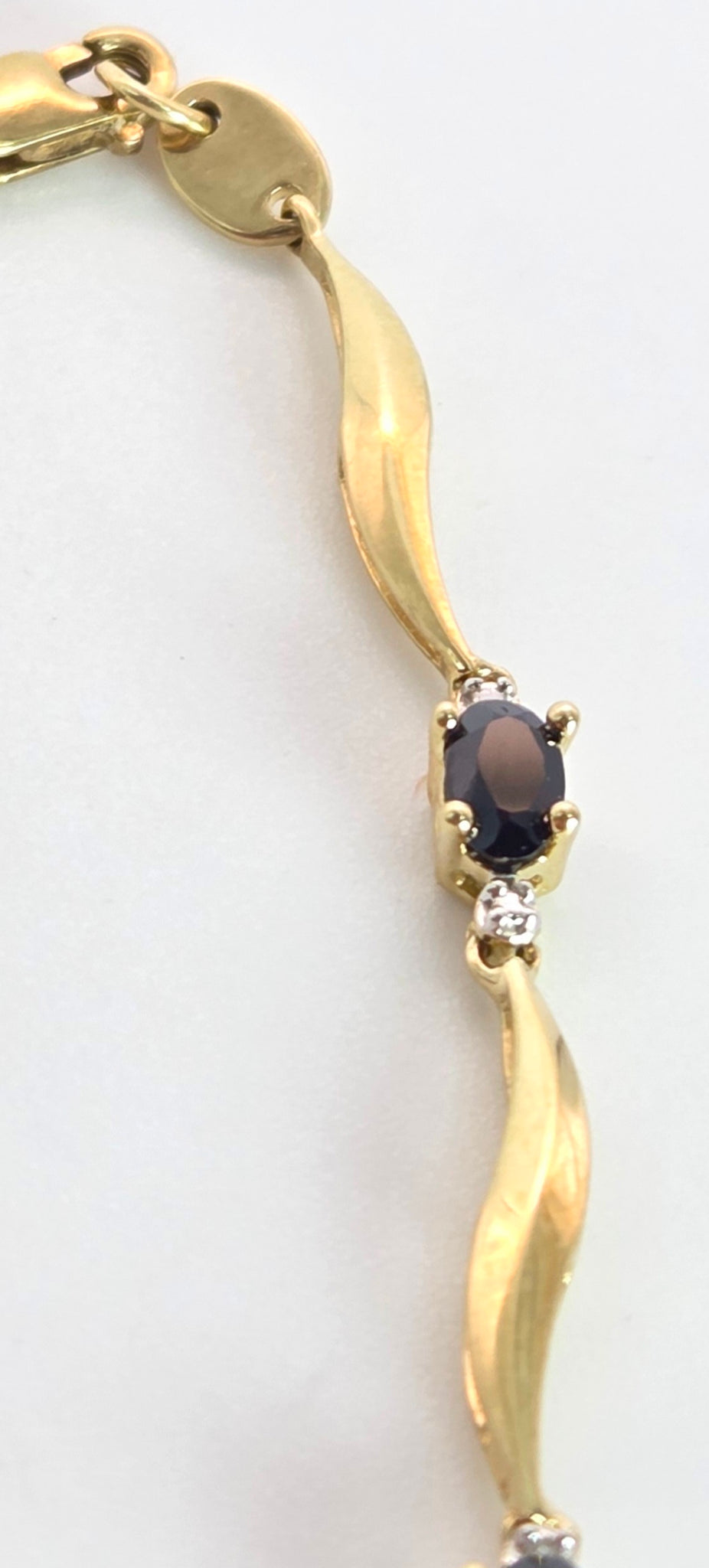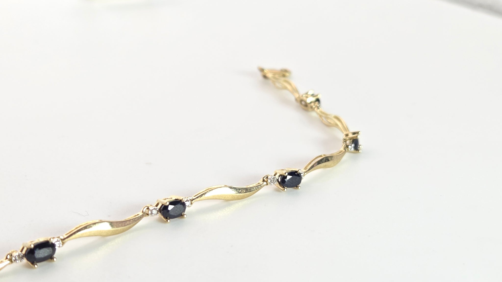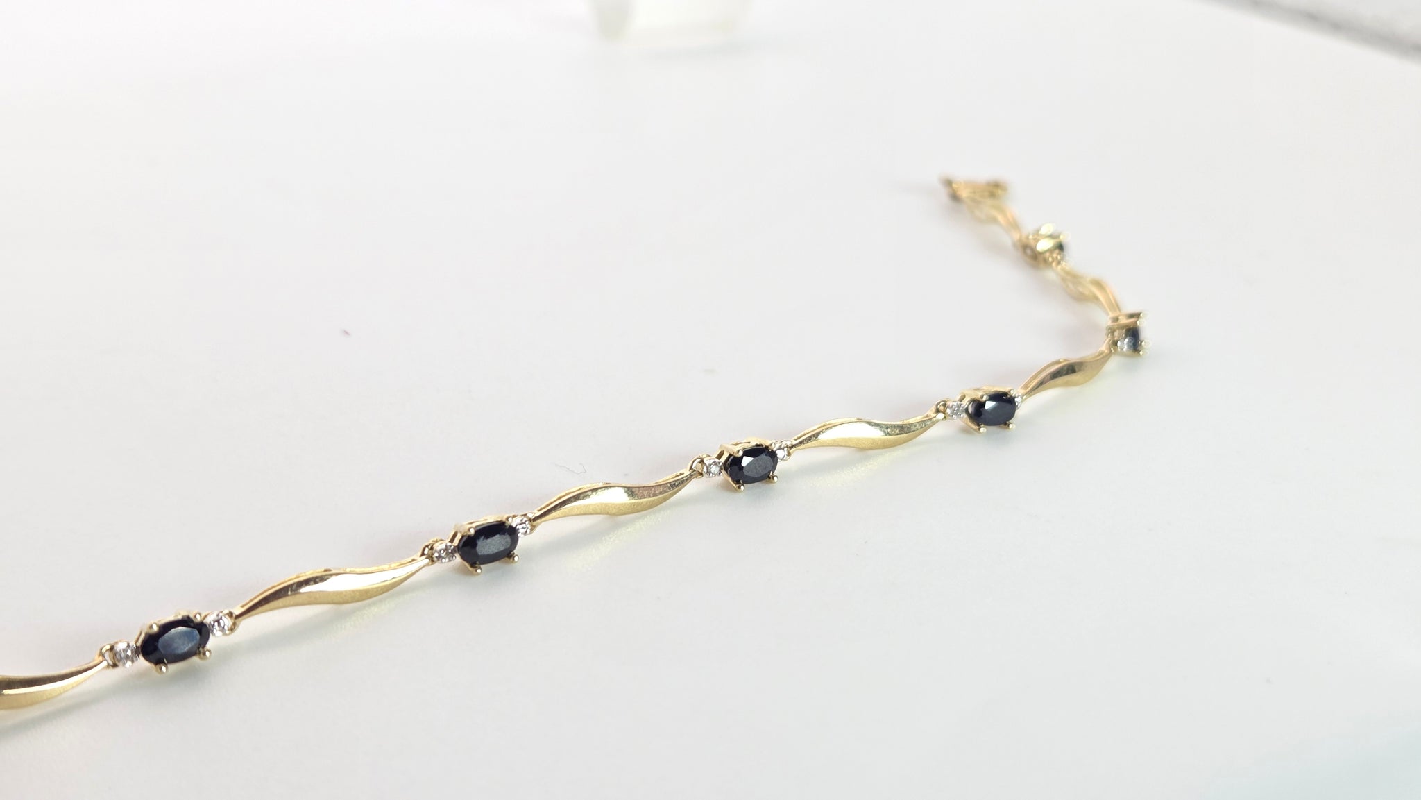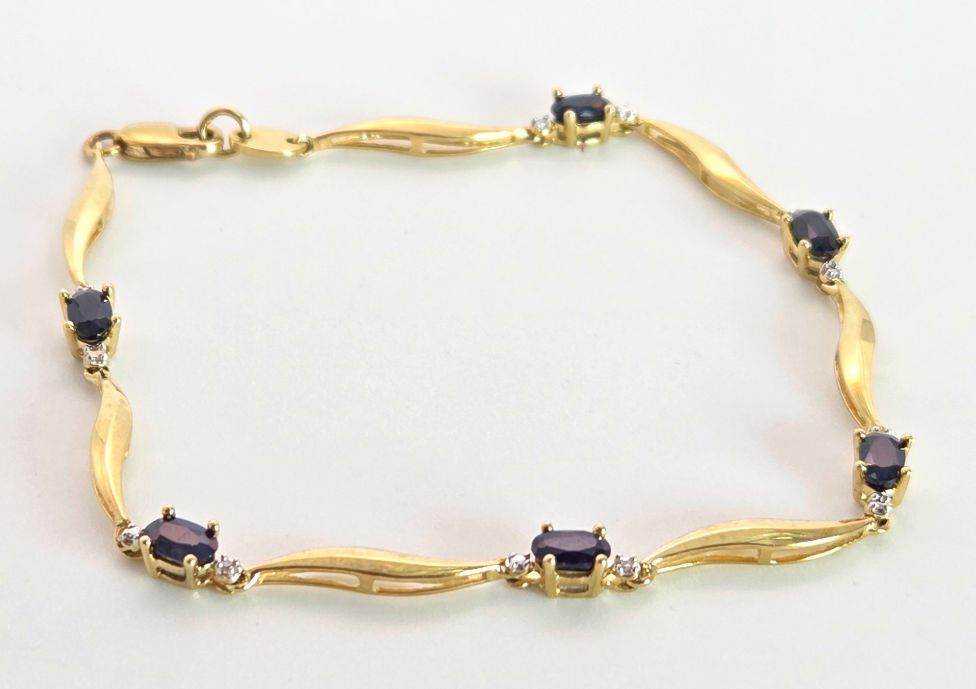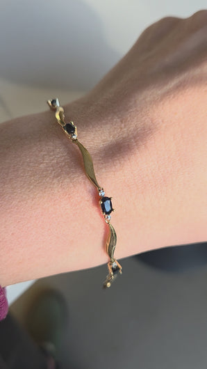 2382: Vintage: 9ct Gold Blue Sapphires Natural Diamonds Link Bracelet (18cm)