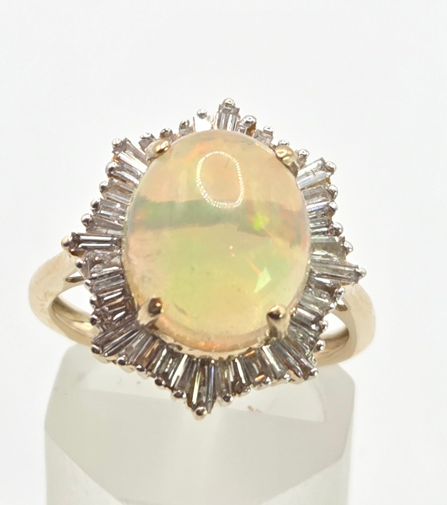 1964: Vintage: 14ct Gold Welo Opal (3.93ct) Diamonds (1.28ct) Ring