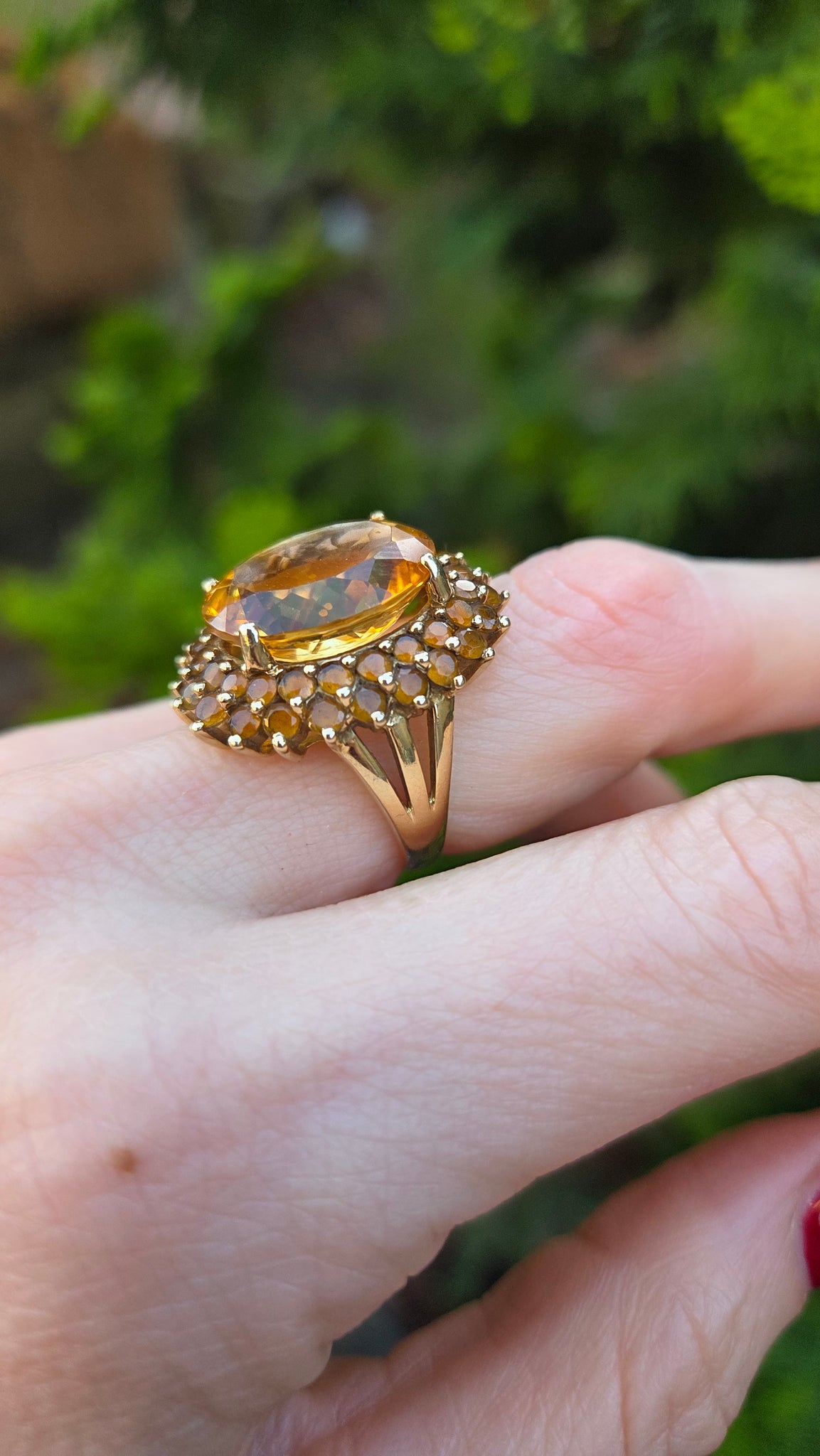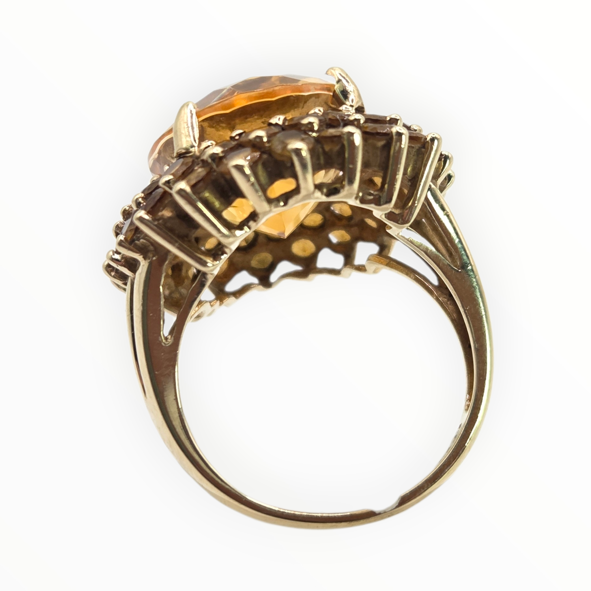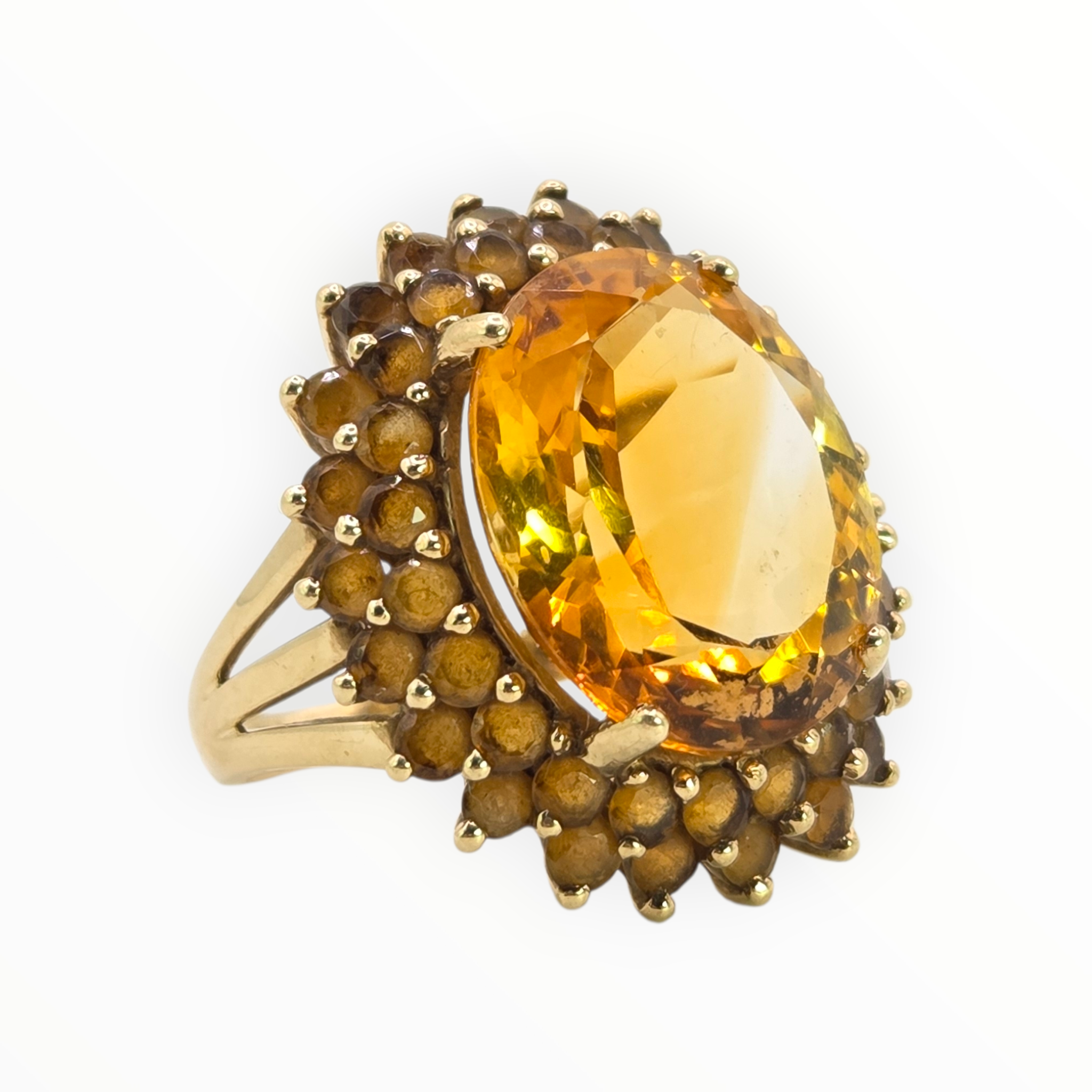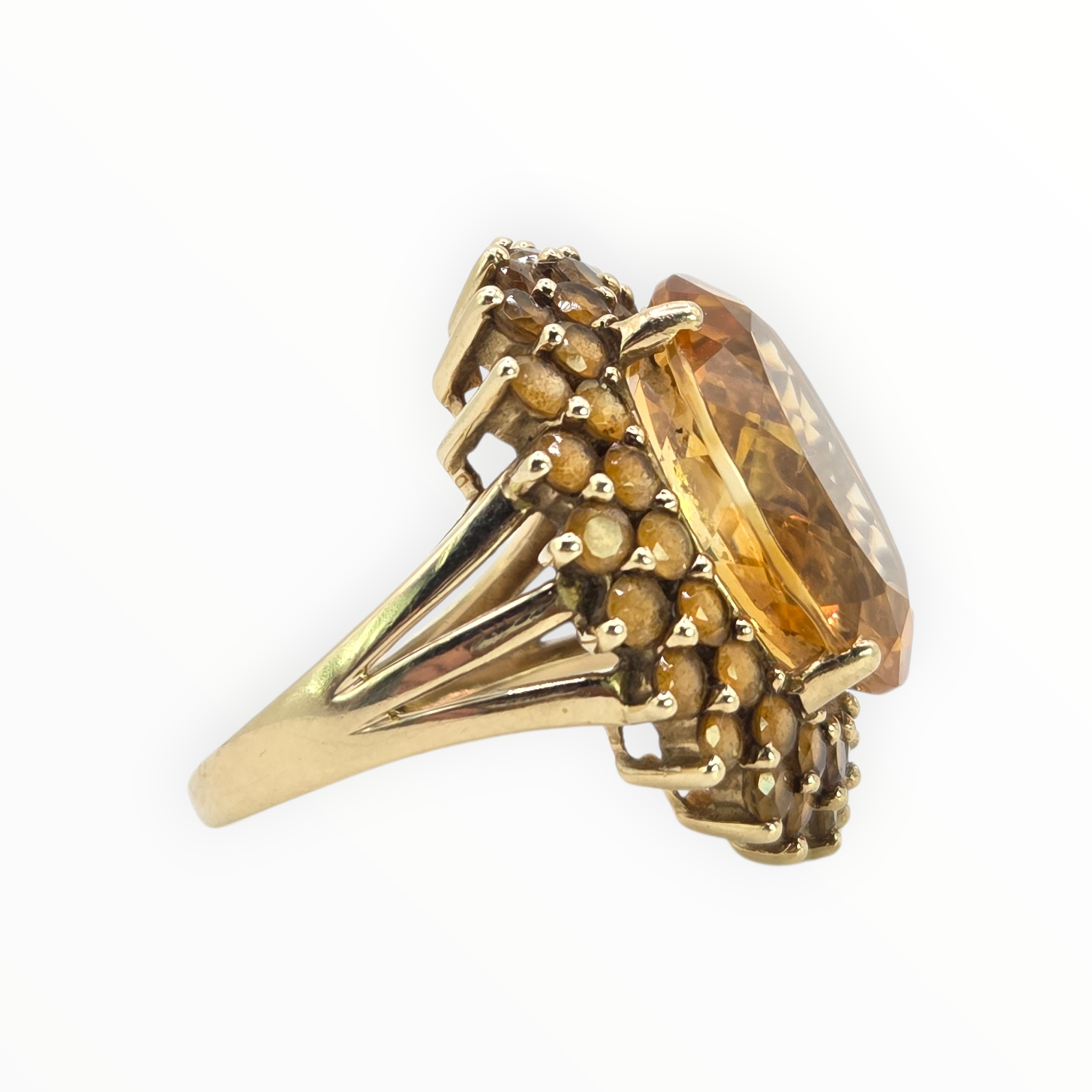2563: 9ct Gold 41 Vibrant Citrines Cocktail Cluster Ring