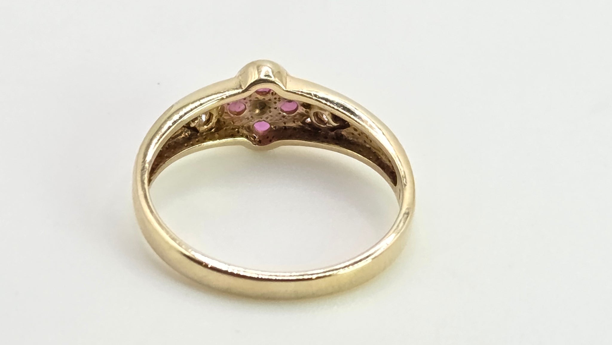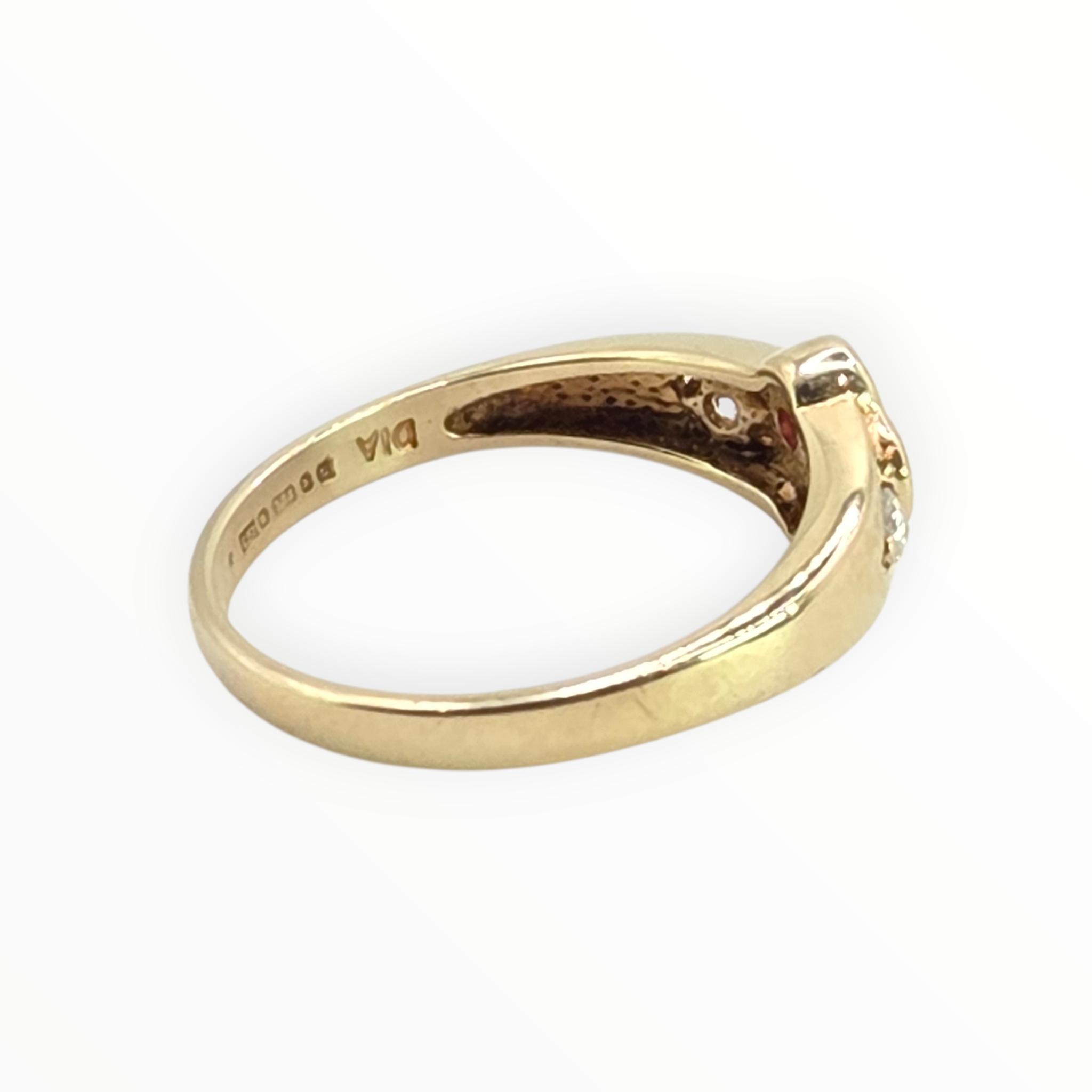2796 Vintage 9ct Gold Rubies Diamonds Geometric Set Dress Ring
