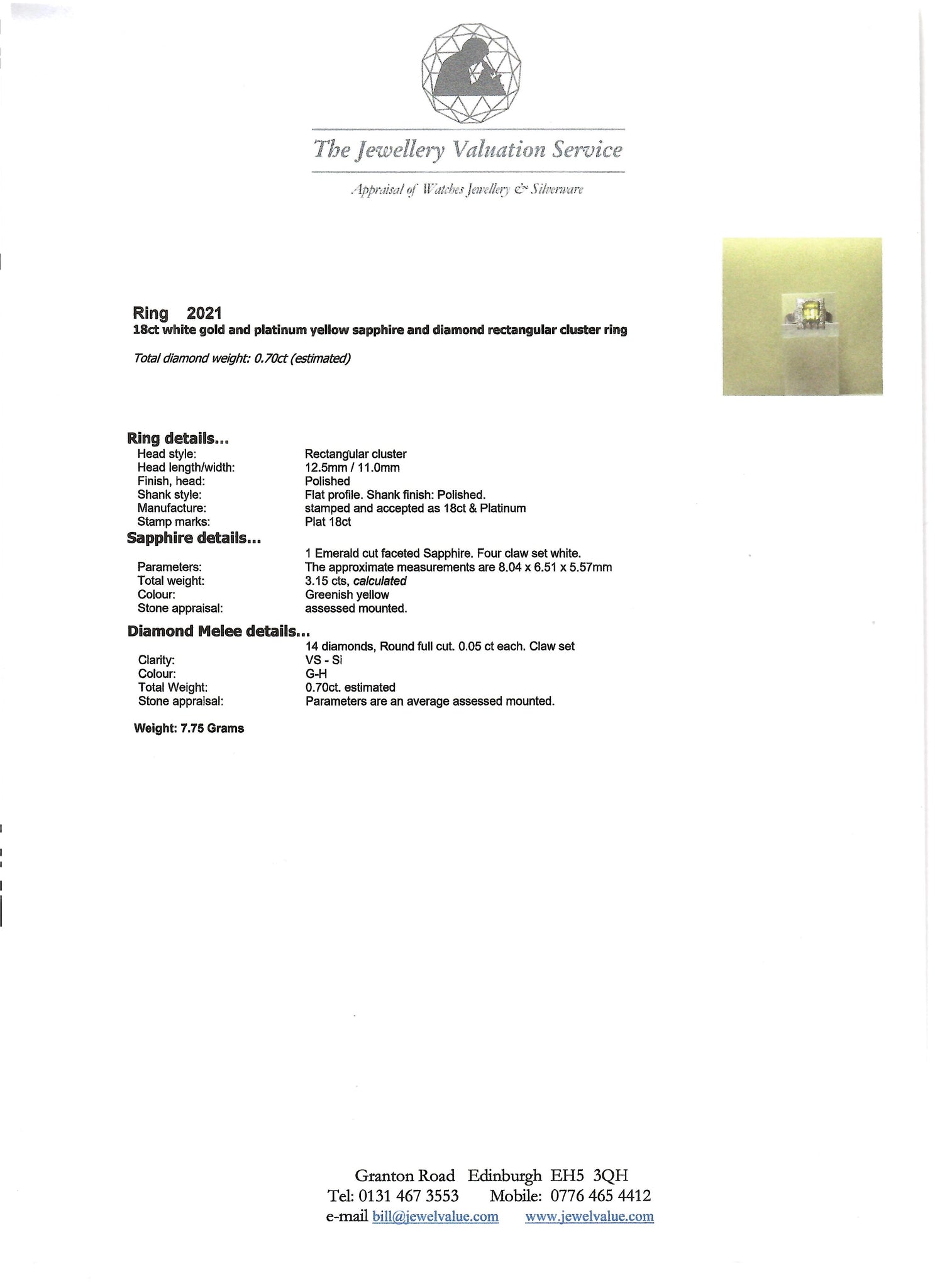 STONES: A yellow sapphire [3.15 carat] and fourteen diamonds [0.70 carat]