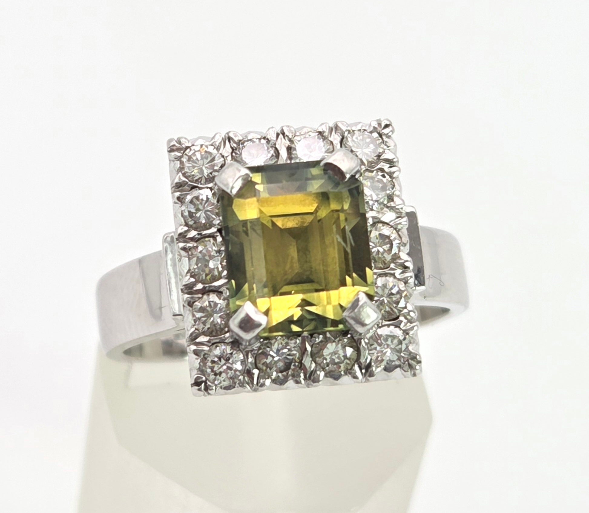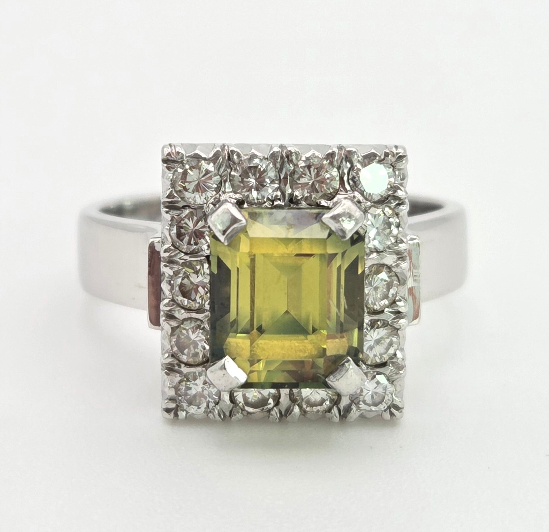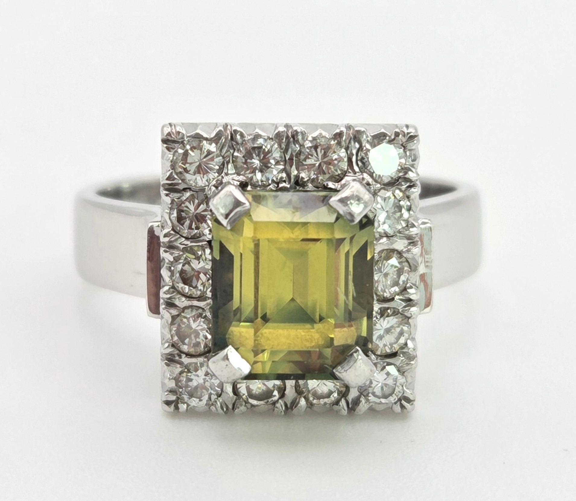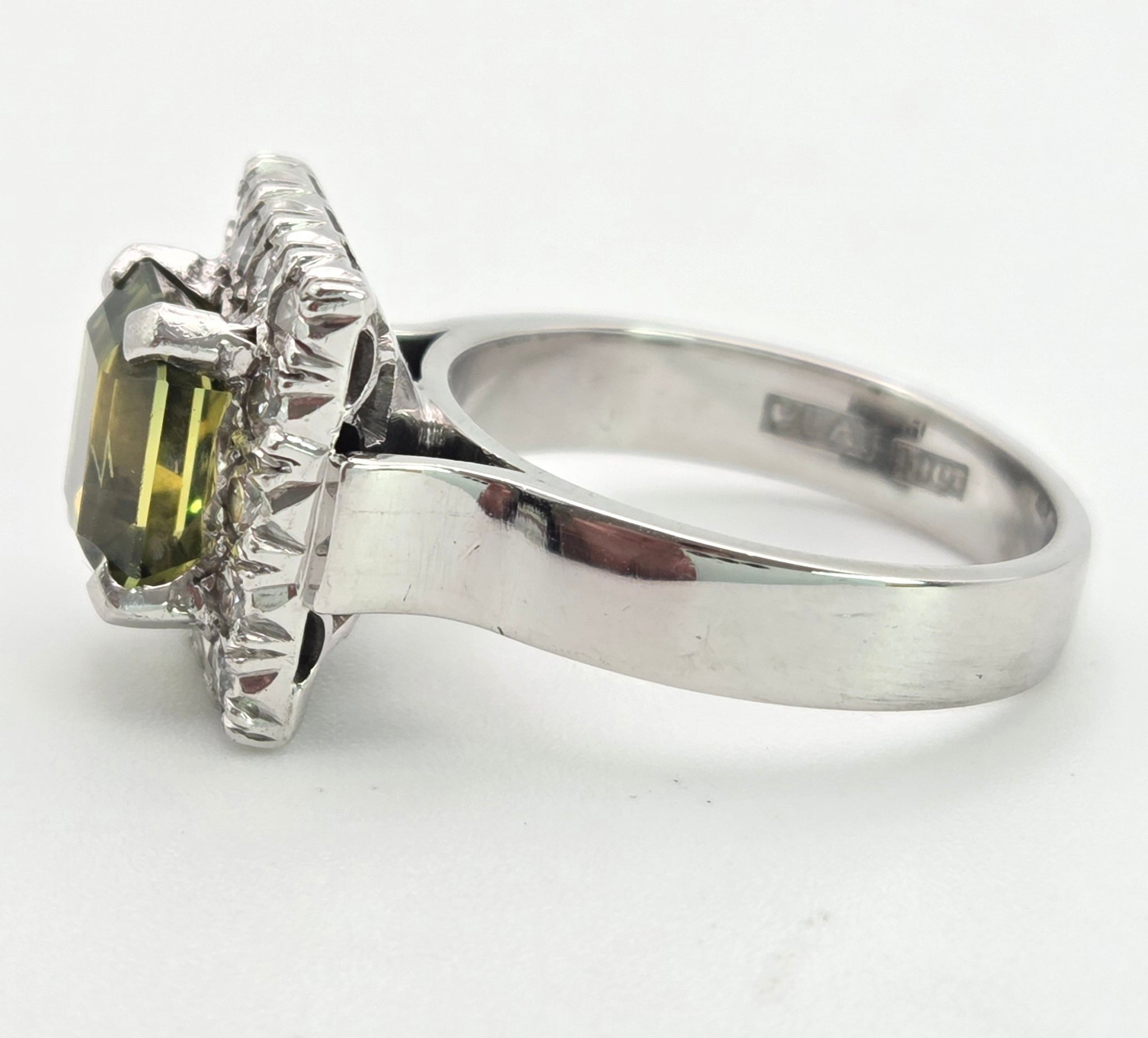 Vintage: 18ct White Gold Yellow Sapphire {3.15ct) Diamonds Cocktail Ring- Platinum Set