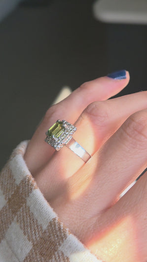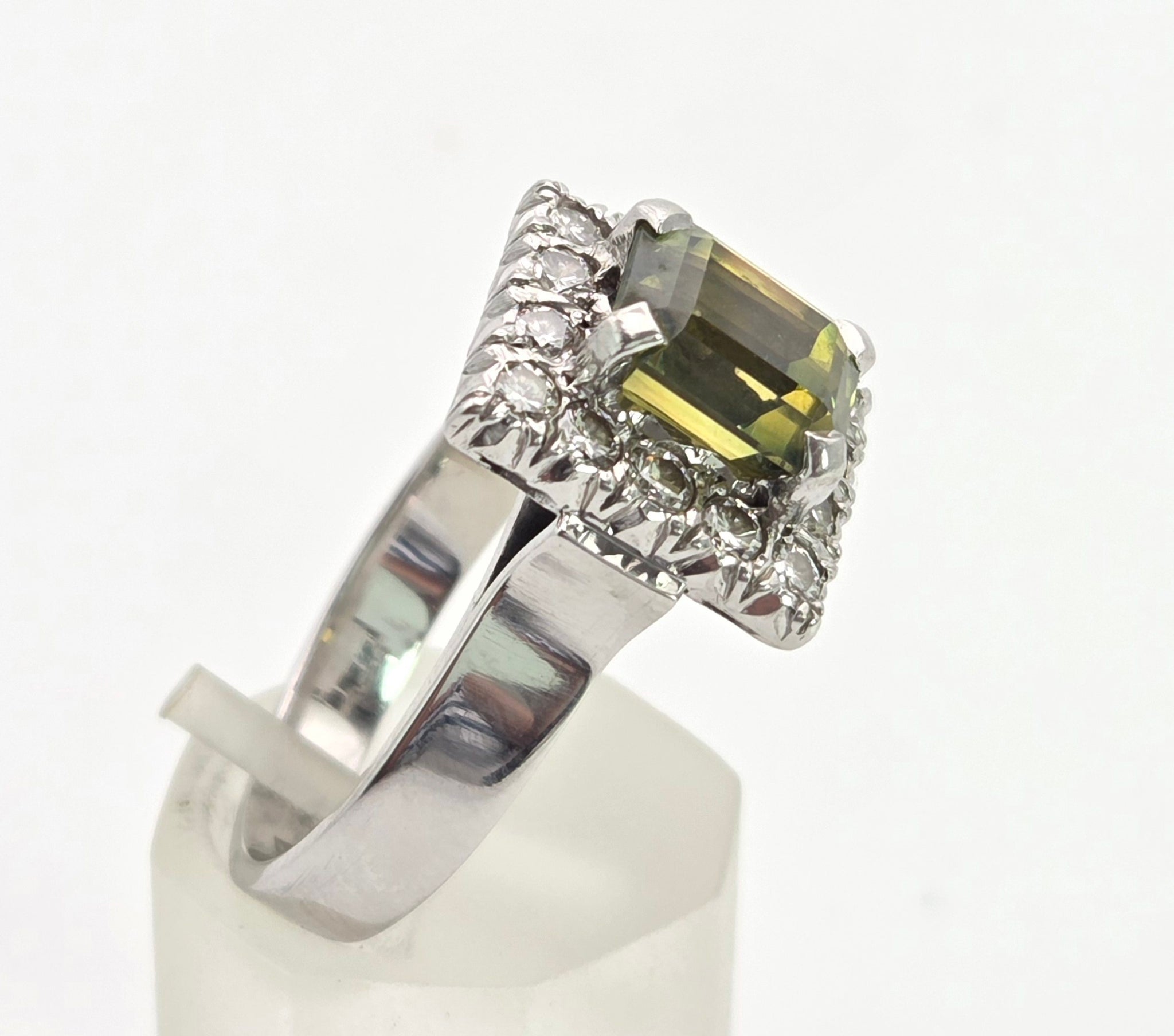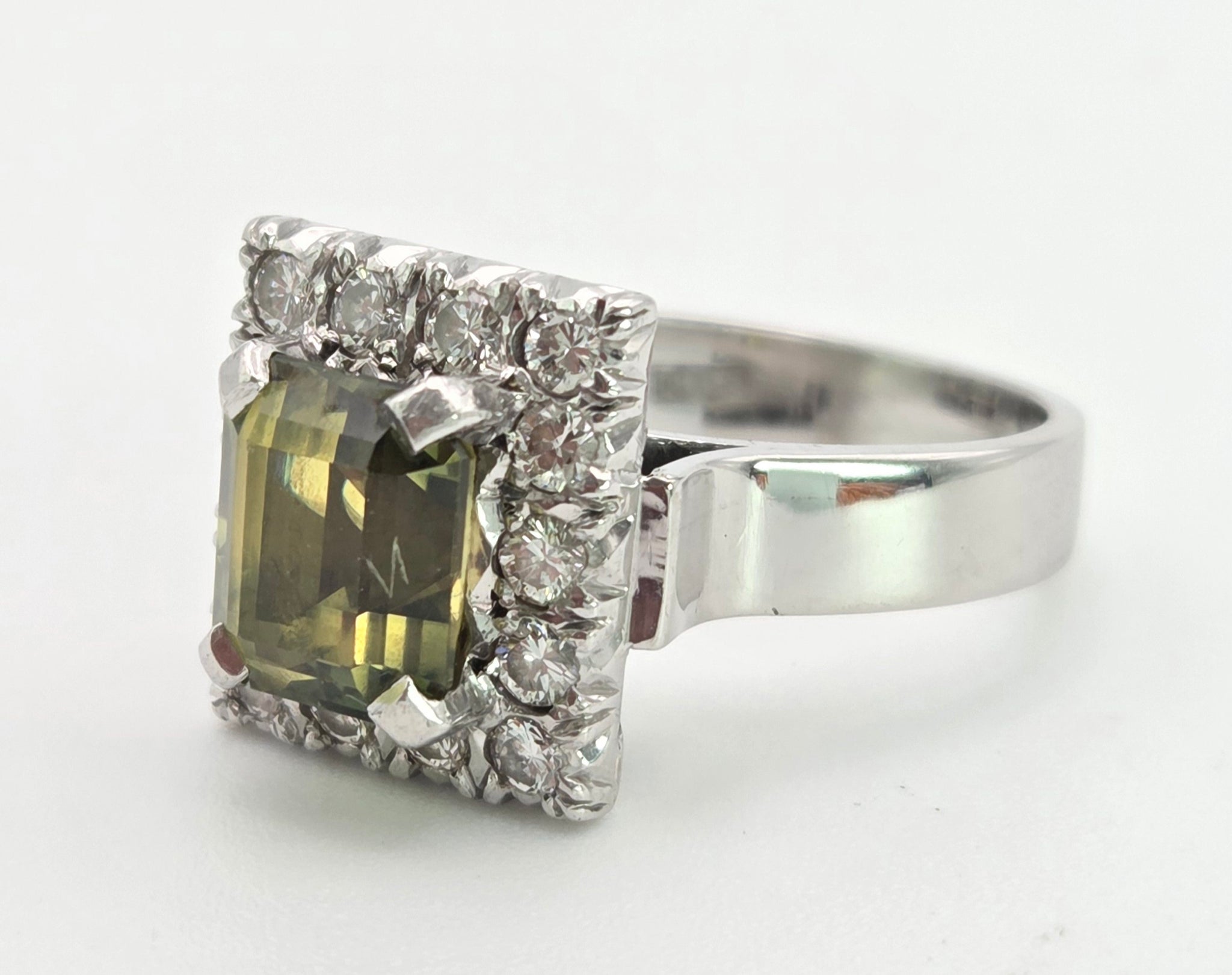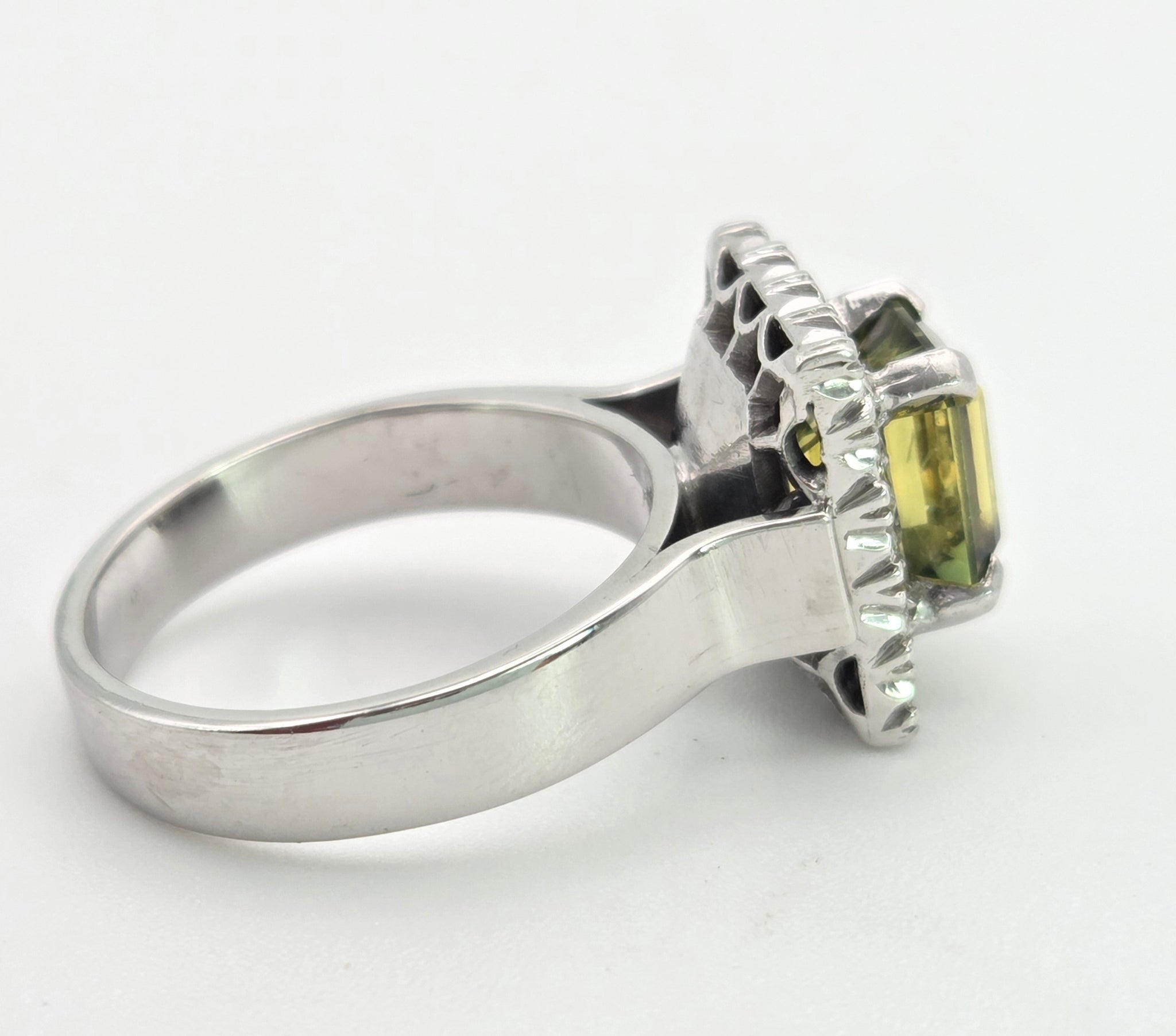 Vintage: 18ct White Gold Yellow Sapphire {3.15ct) Diamonds Cocktail Ring- Platinum Set