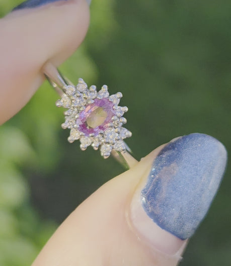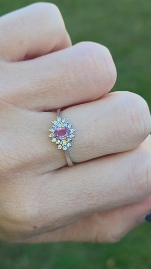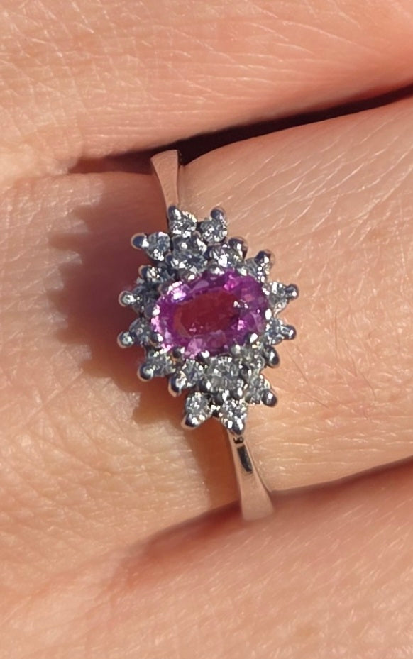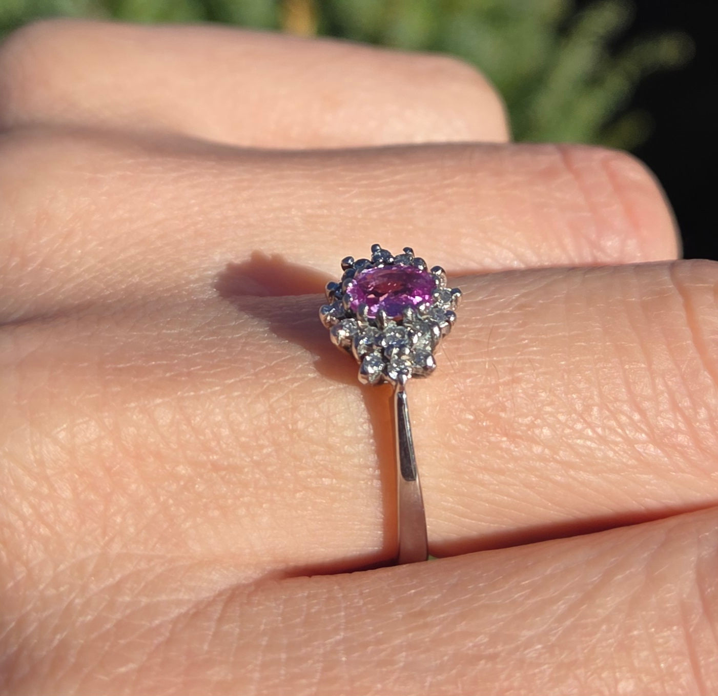 Vintage: 18ct White Gold Pink Sapphire Natural Diamonds Dress Ring