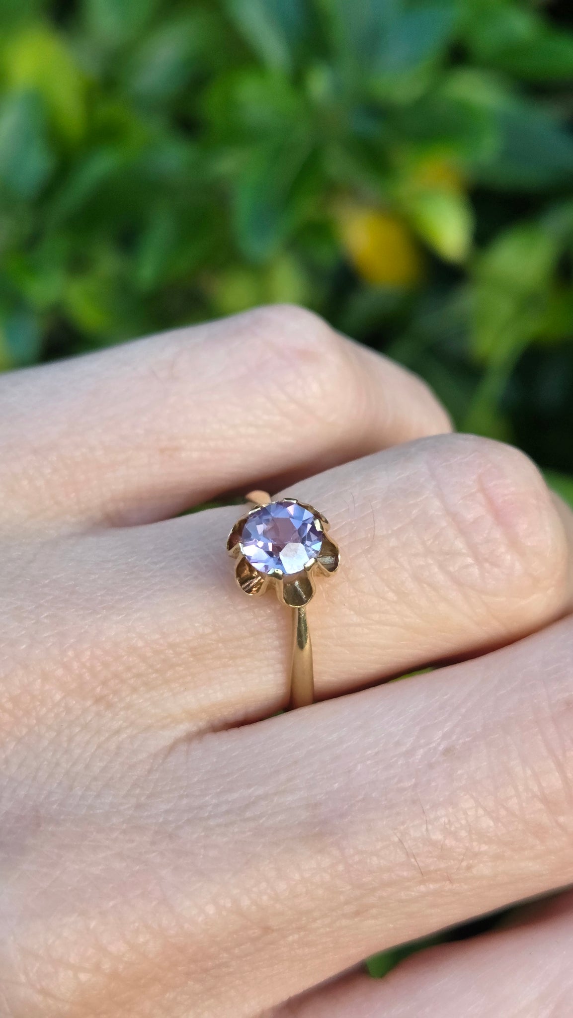 Purple fancy sapphire are quite extraordinary and far rarer than the more traditional blue sapphire. She is petite and cute, a rare find.