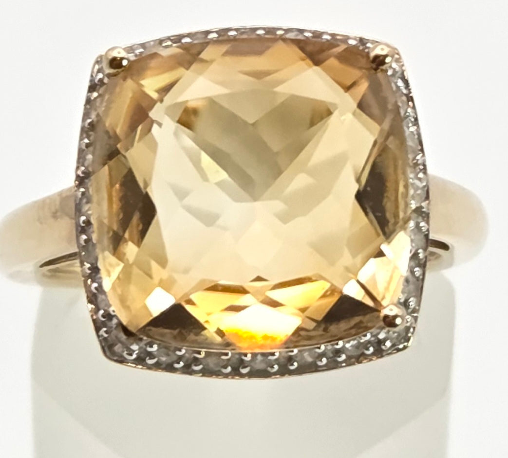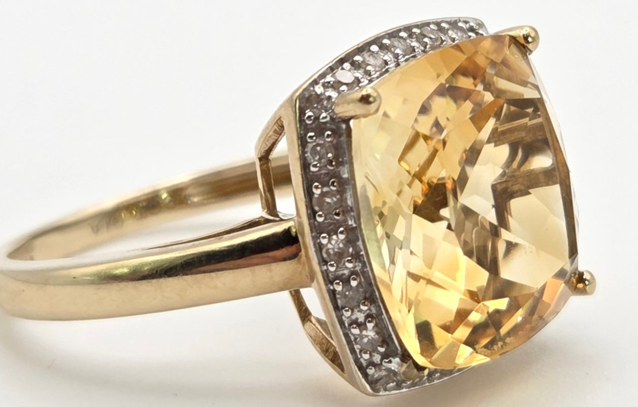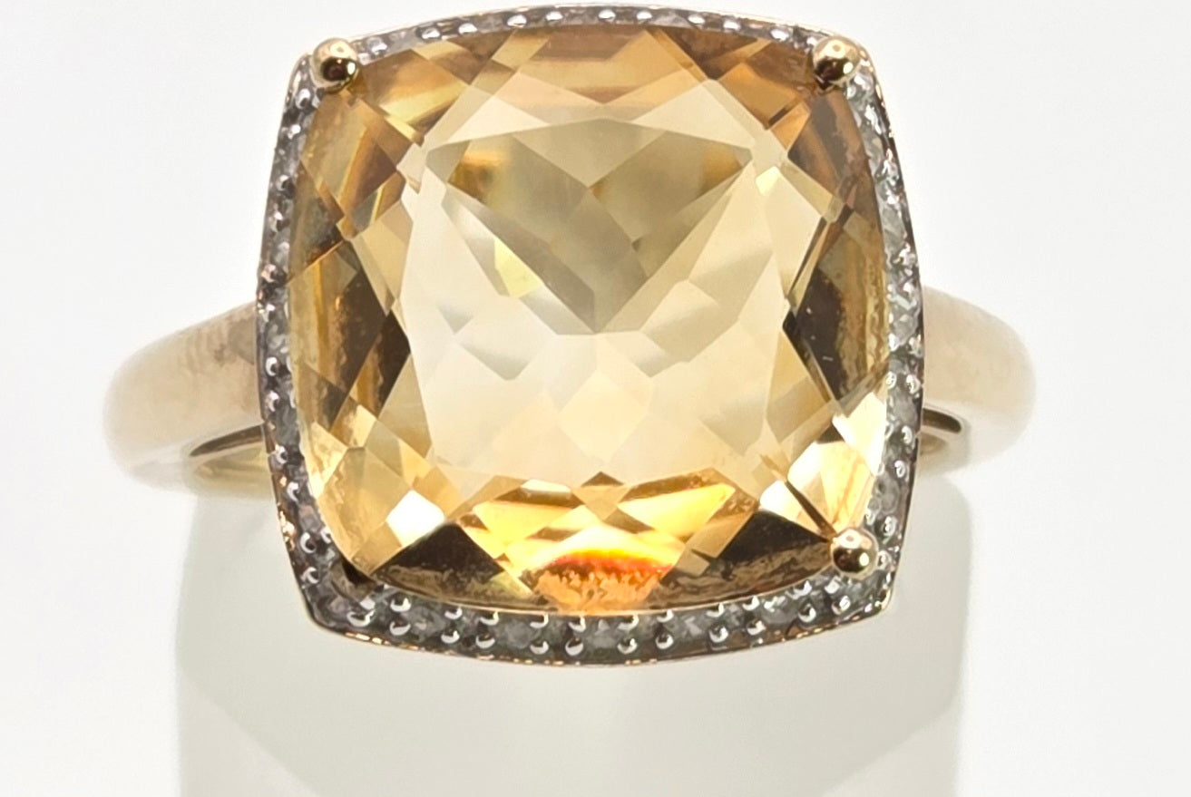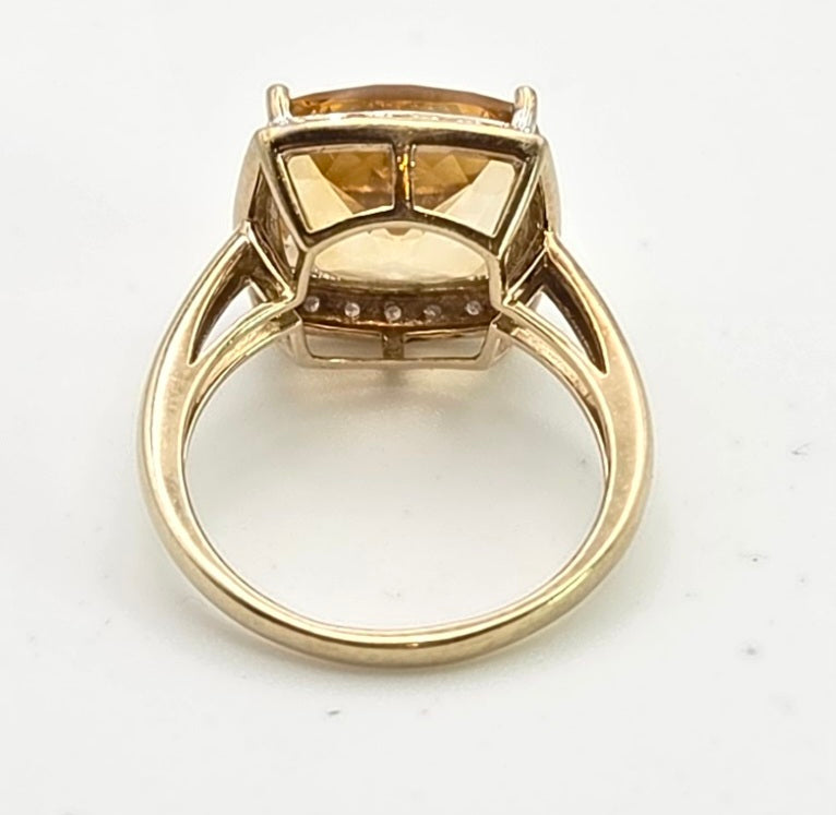 2420 Vintage: 9ct Gold Faceted Fiery Orange Citrine 24 Natura Diamonds Dress Ring