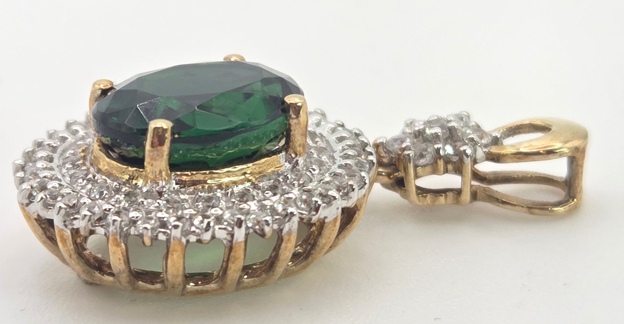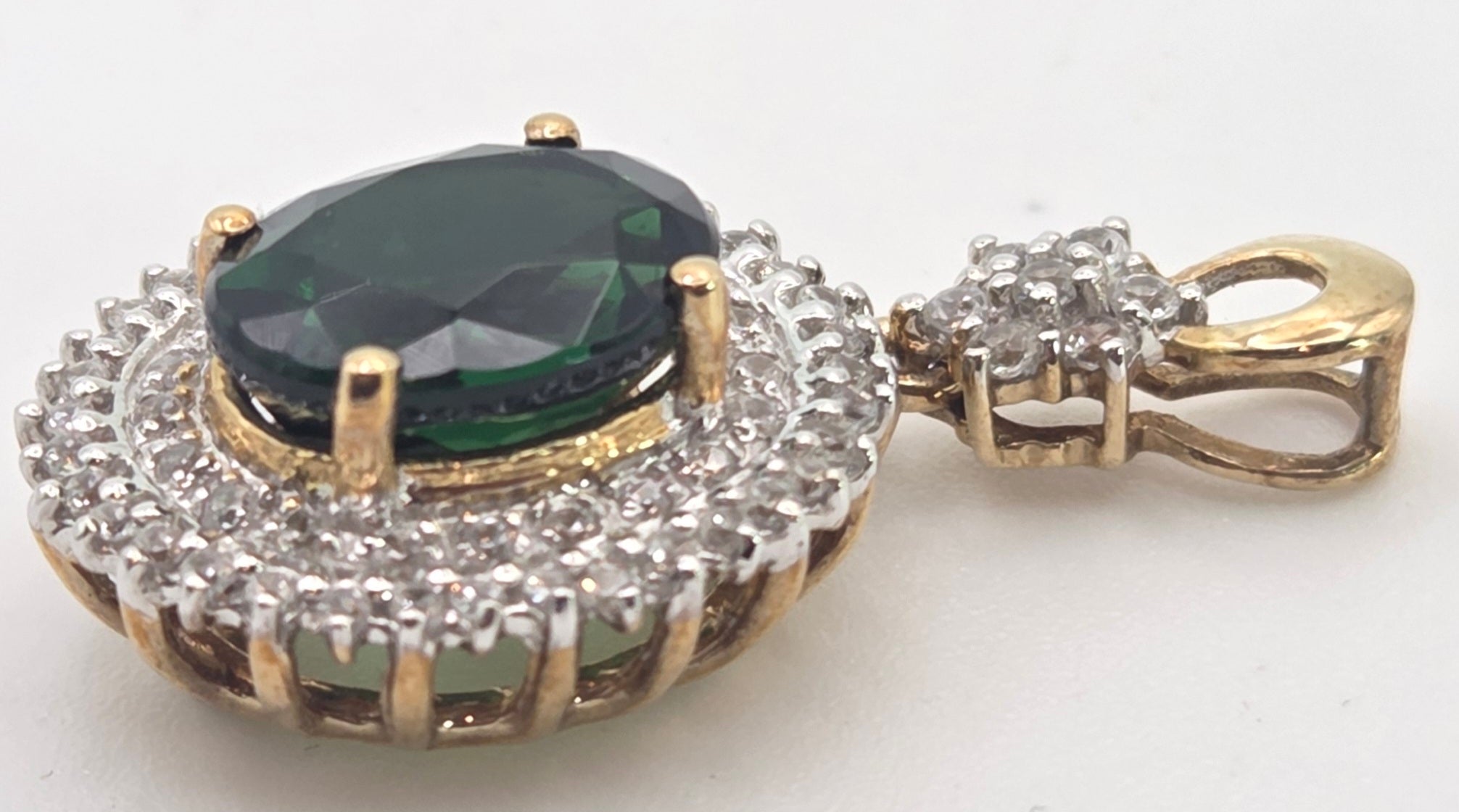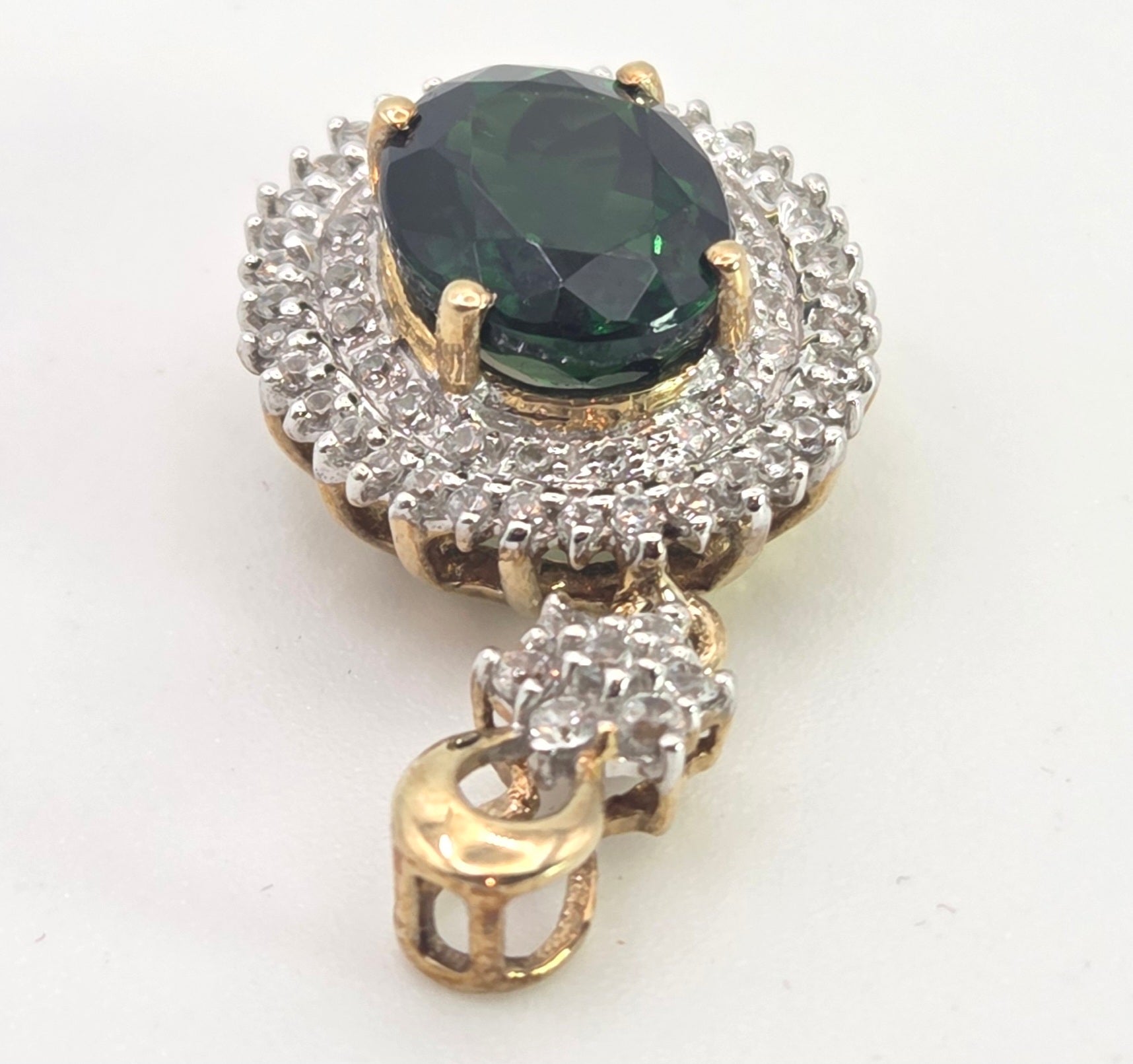 2480- Vintage 9ct Gold Chrome Diopside Glacier Topaz Diana Style Pendant