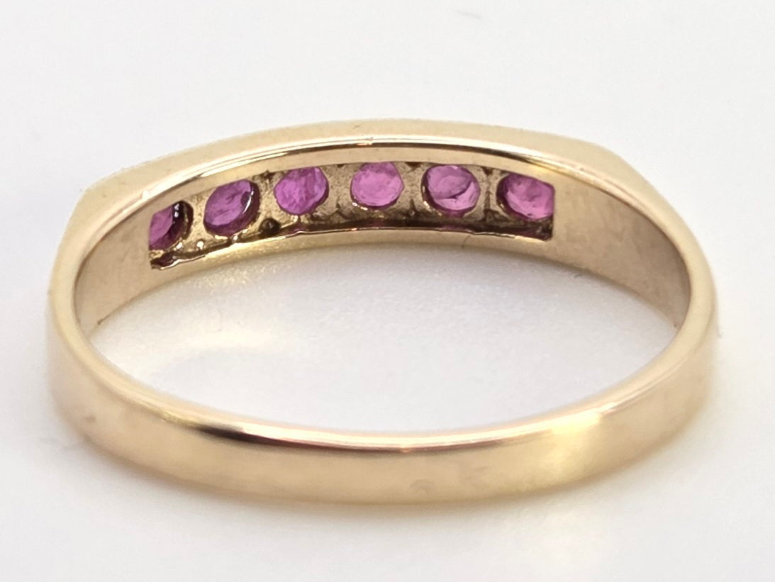 2508- Vintage: 9ct Gold 6 Channel Set Rubies Stacker/Half- Eternity Ring