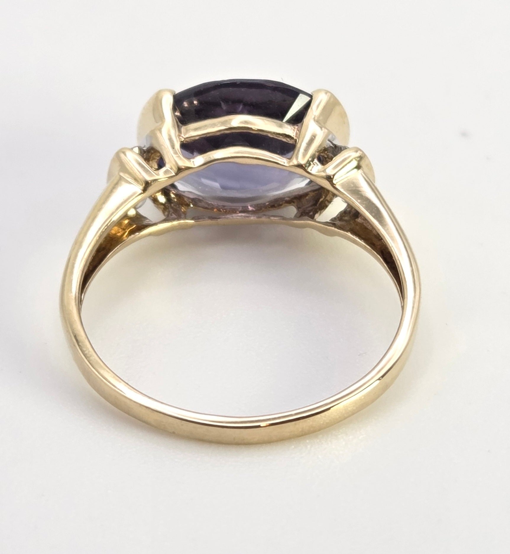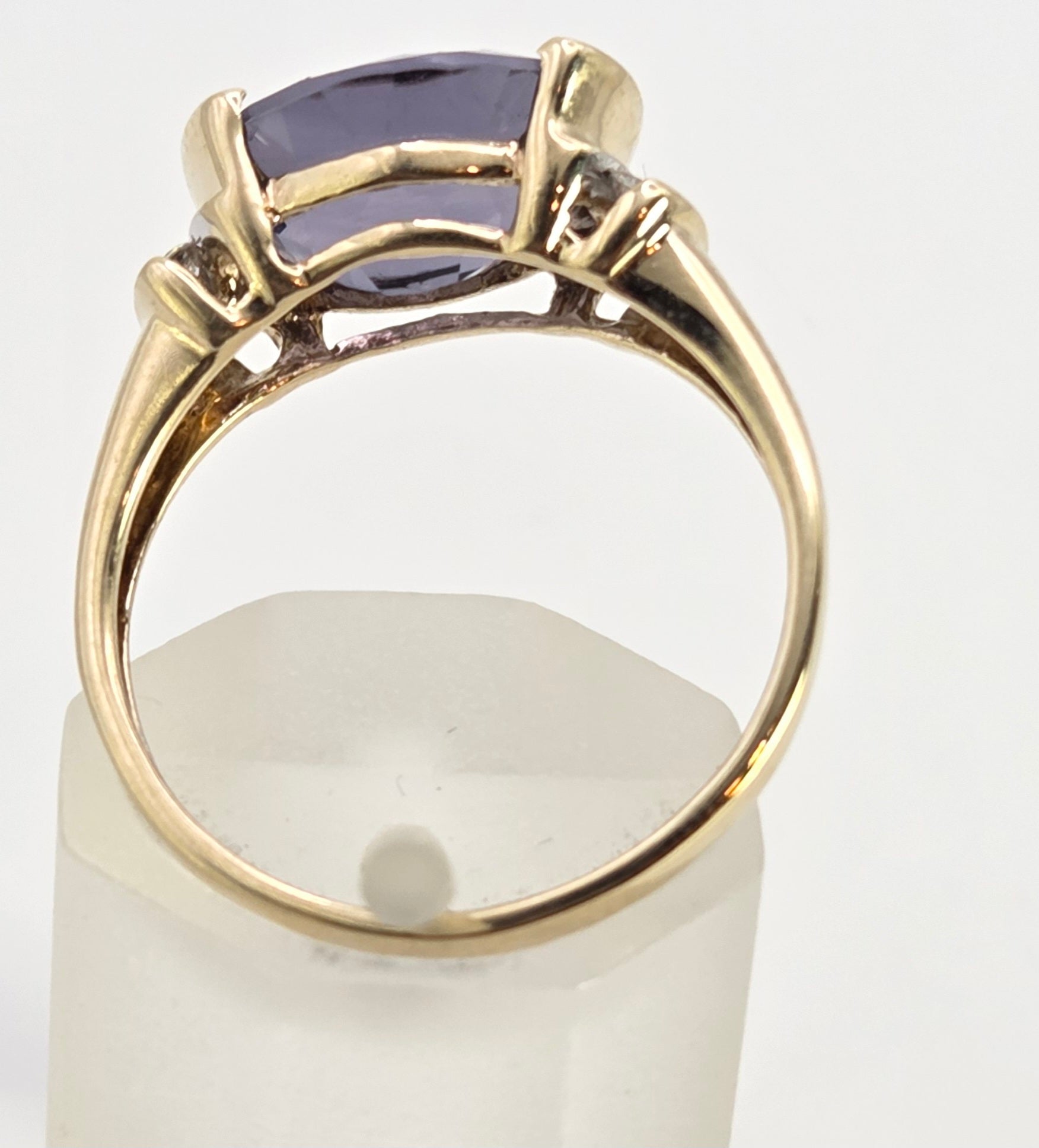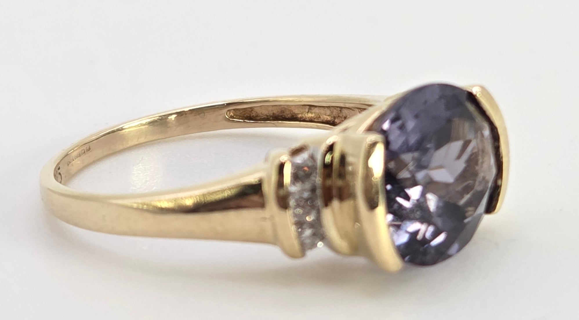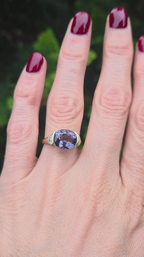 5999: Vintage: 9ct Gold Oval Faceted Purple Amethyst Diamond Dress Ring