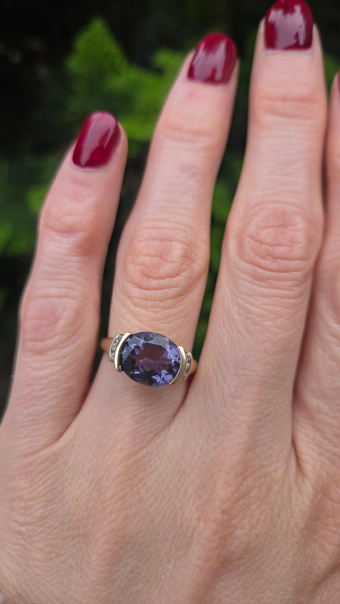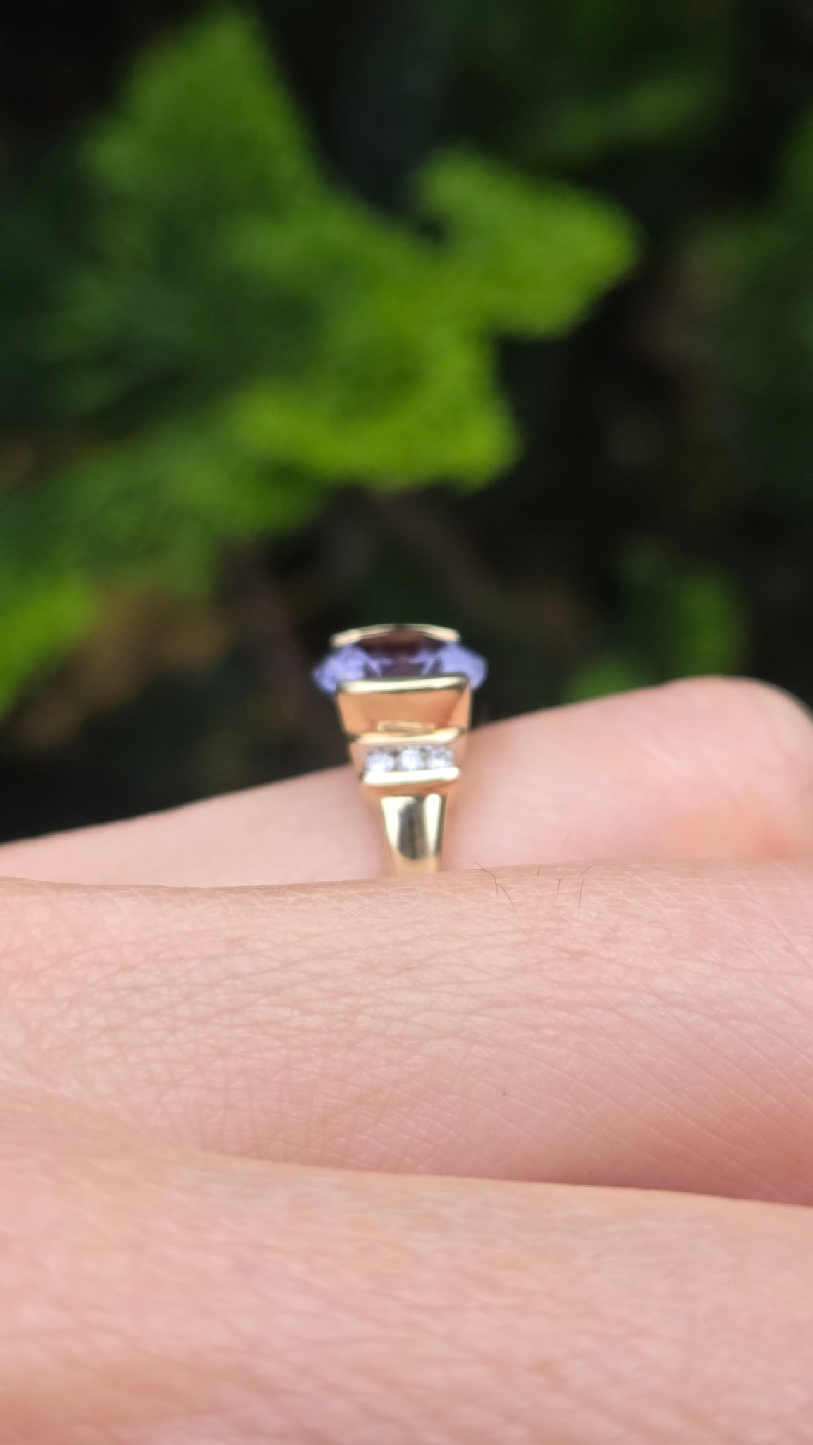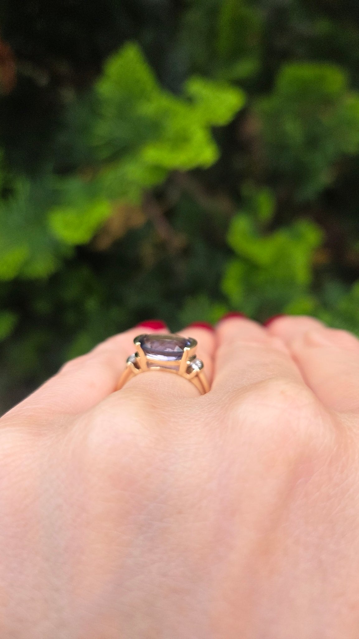 5999: Vintage: 9ct Gold Oval Faceted Purple Amethyst Diamond Dress Ring