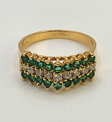 6331 Vintage: 14ct Gold 18 Emeralds Diamonds Tiered Dress/Stacker Ring