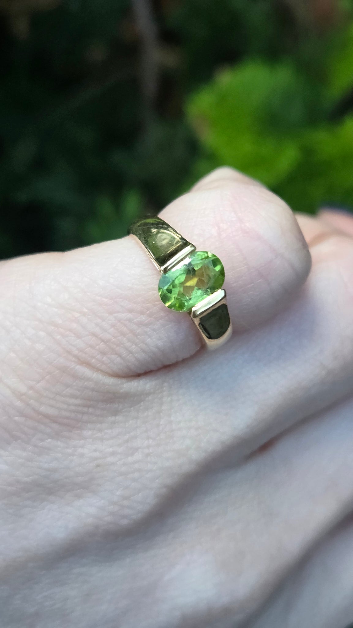 Vintage; 18ct Gold Peridot Solitaire Dress/Stacker Ring- Sartorial beauty