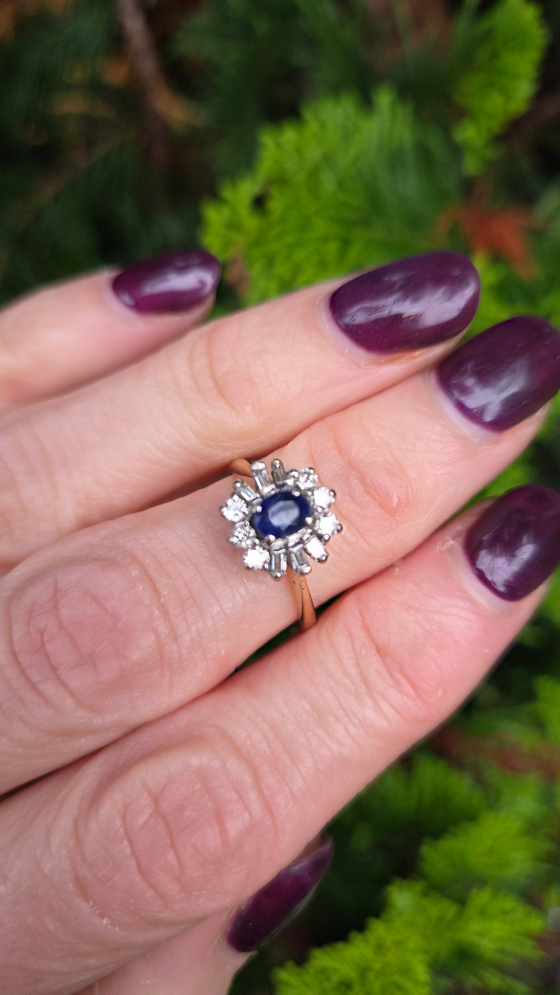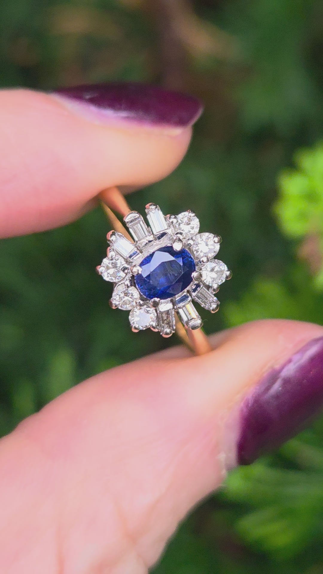 0685: Exceptional 18ct Cornflower Blue Sapphire Diamonds Flower Head Ring- Date Mark 1988