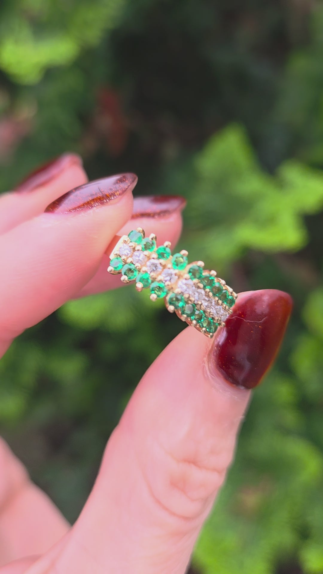 Vintage: 14ct Gold 18 Emeralds Diamonds Tiered Dress/Stacker Ring- incredible sparkle