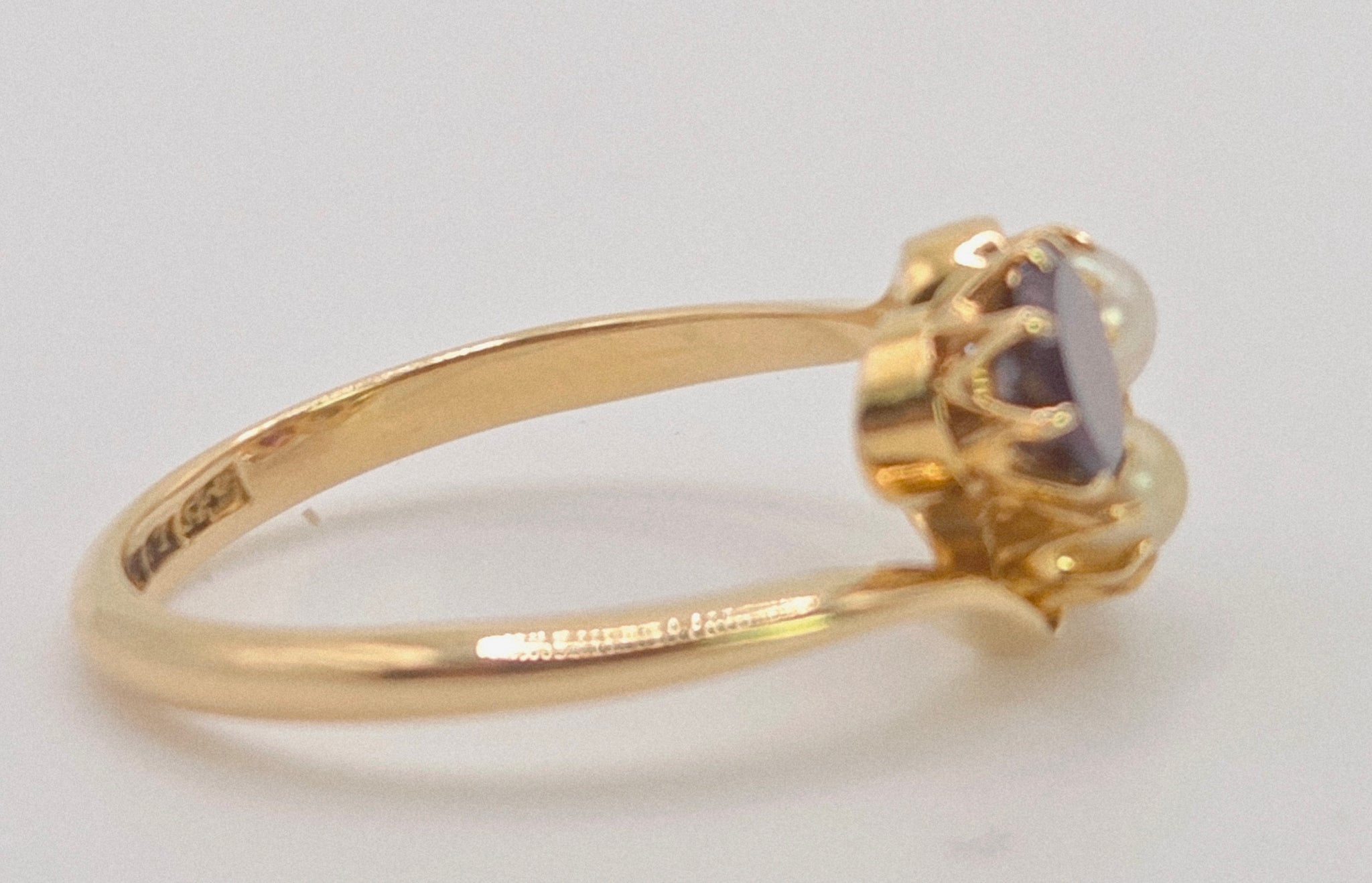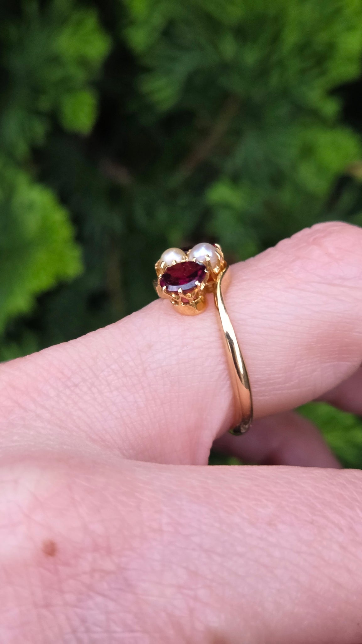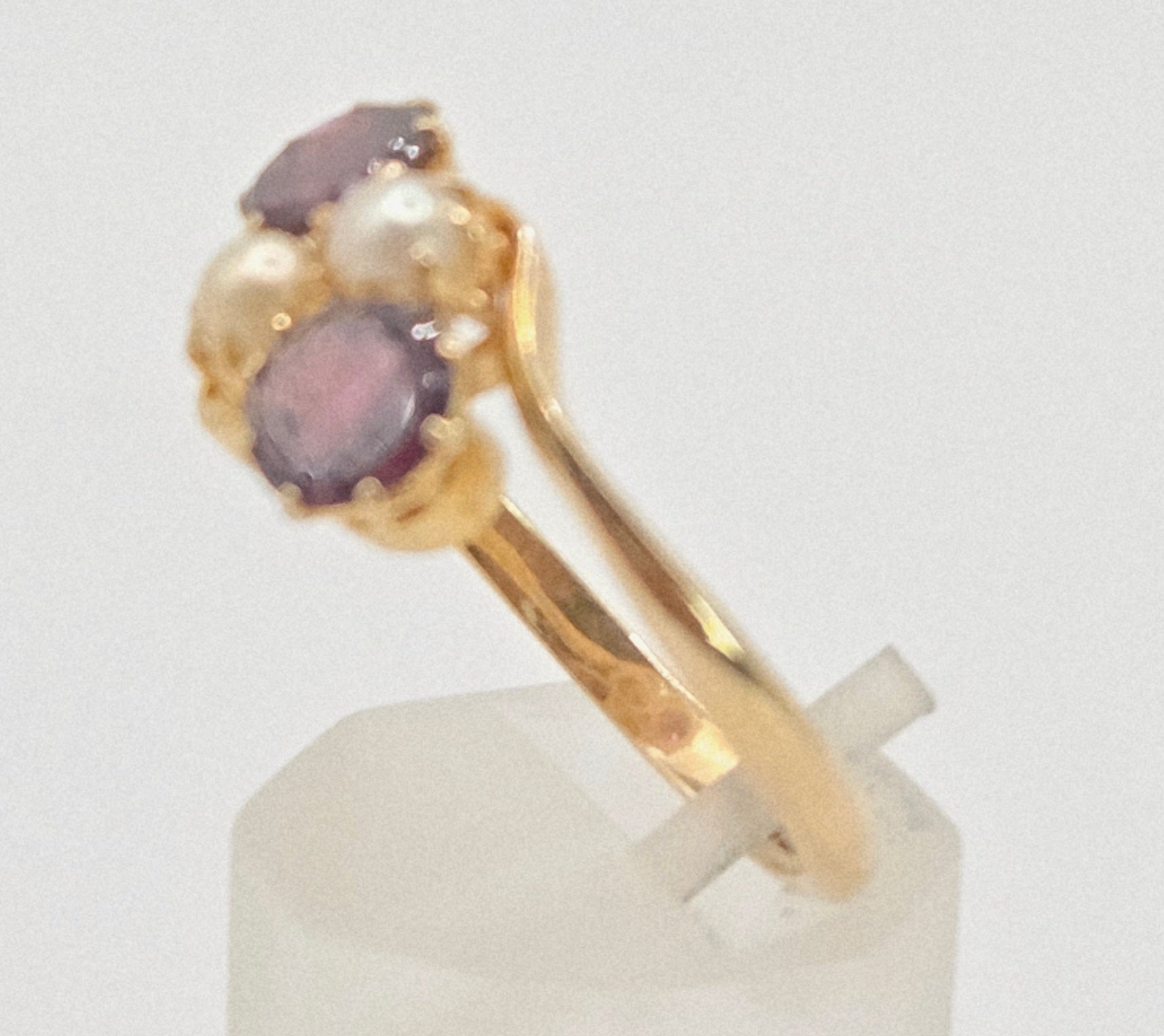 2697: Vintage 18ct Gold Almandine Garnets Cultured Pearls Bypass Ring