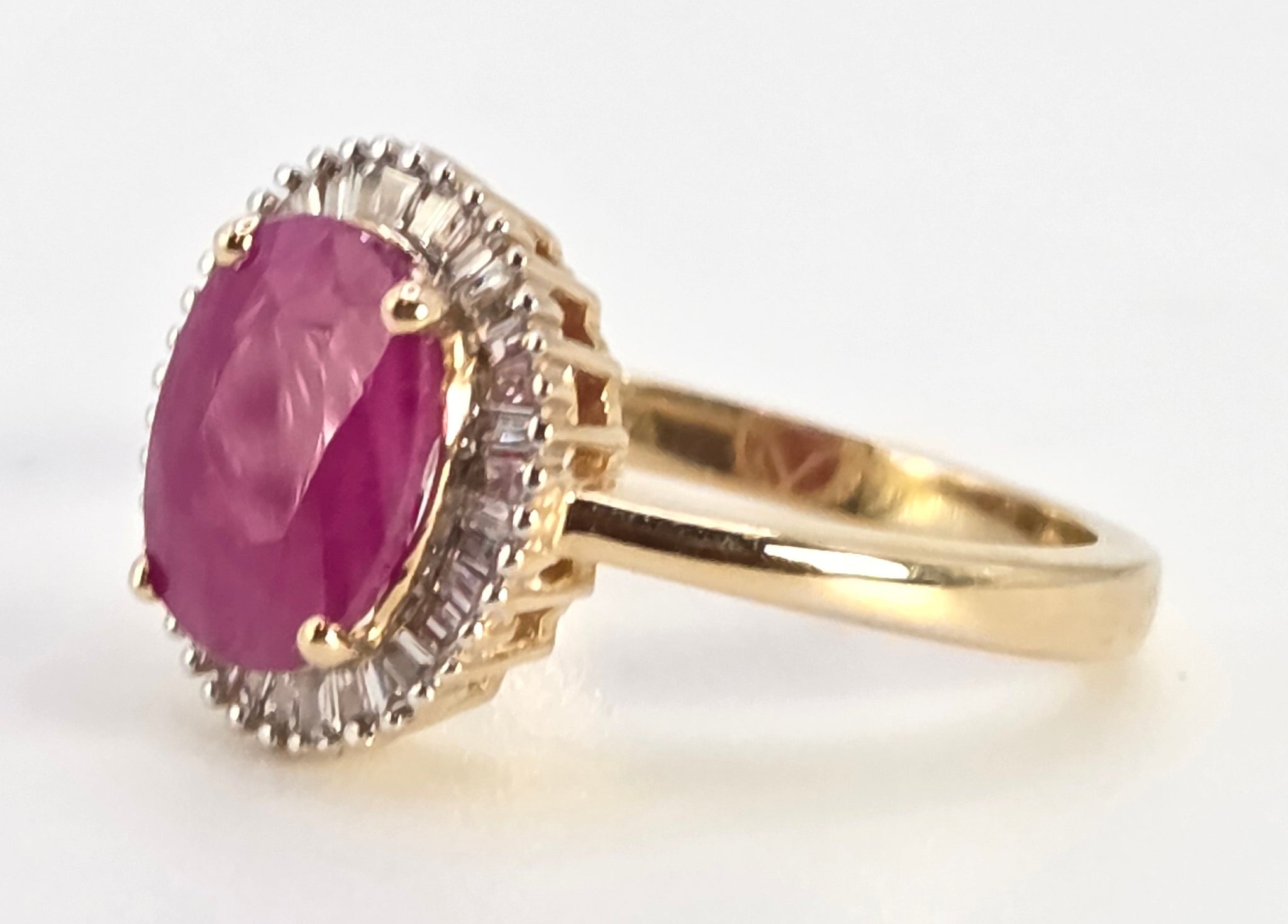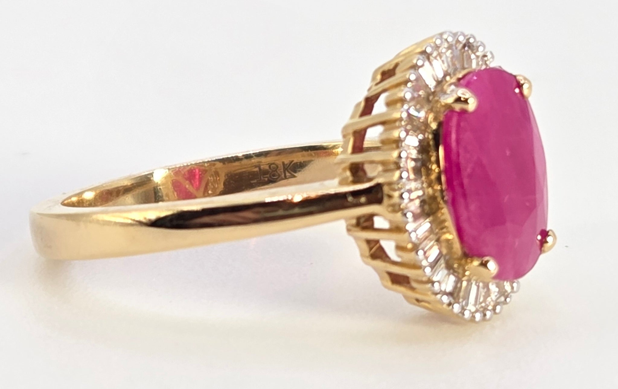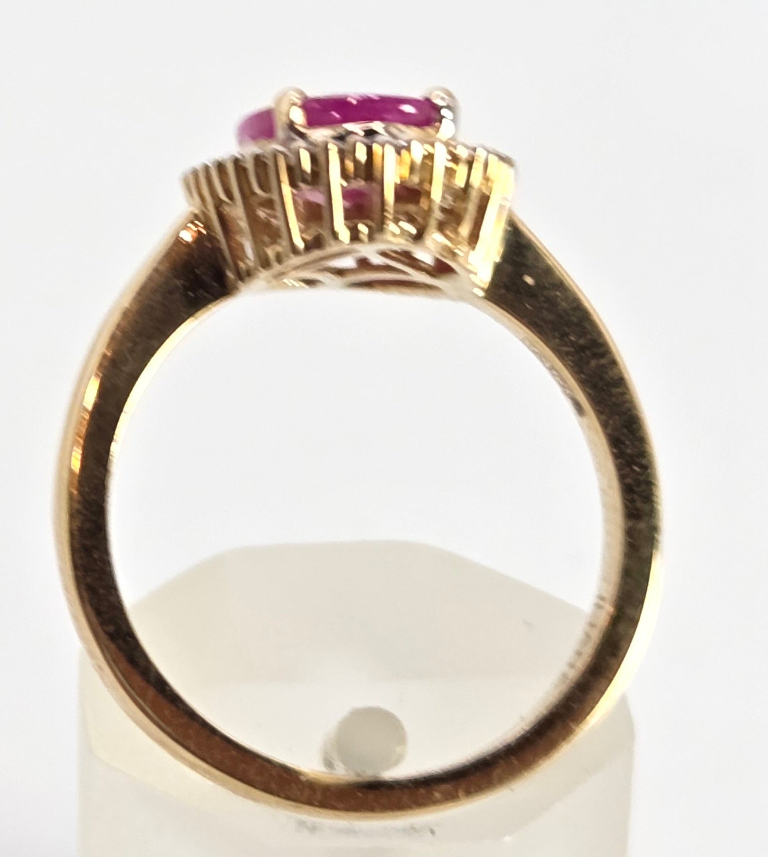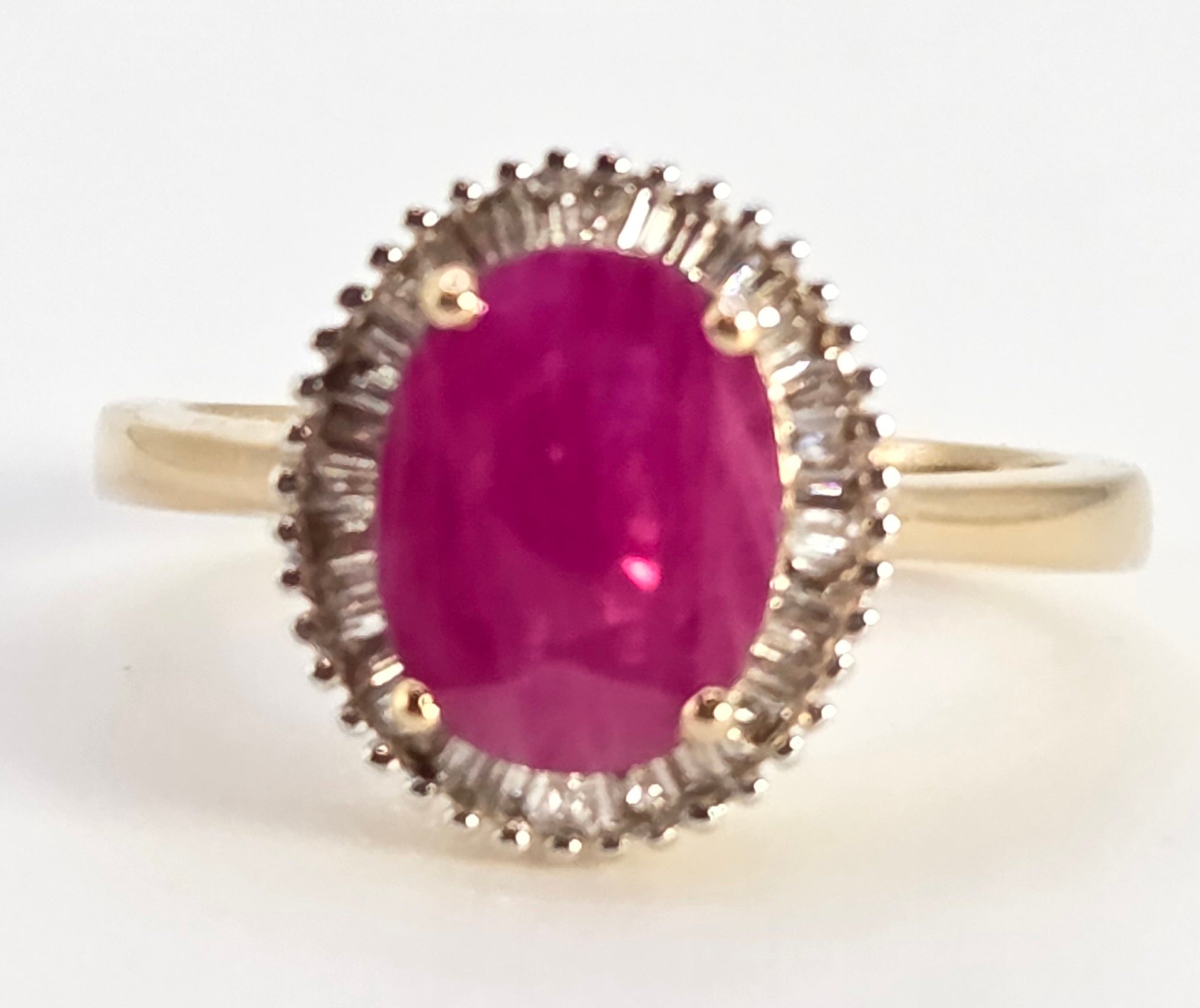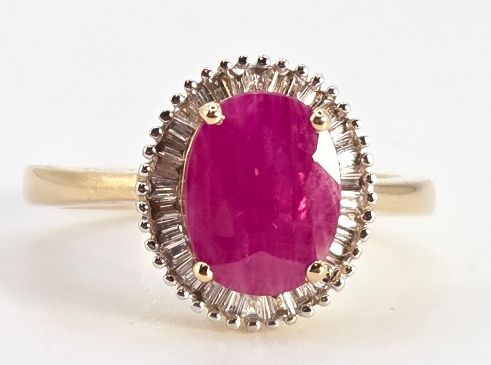2562: Vintage: 18ct Gold Burmese Ruby Diamonds Cluster Ring