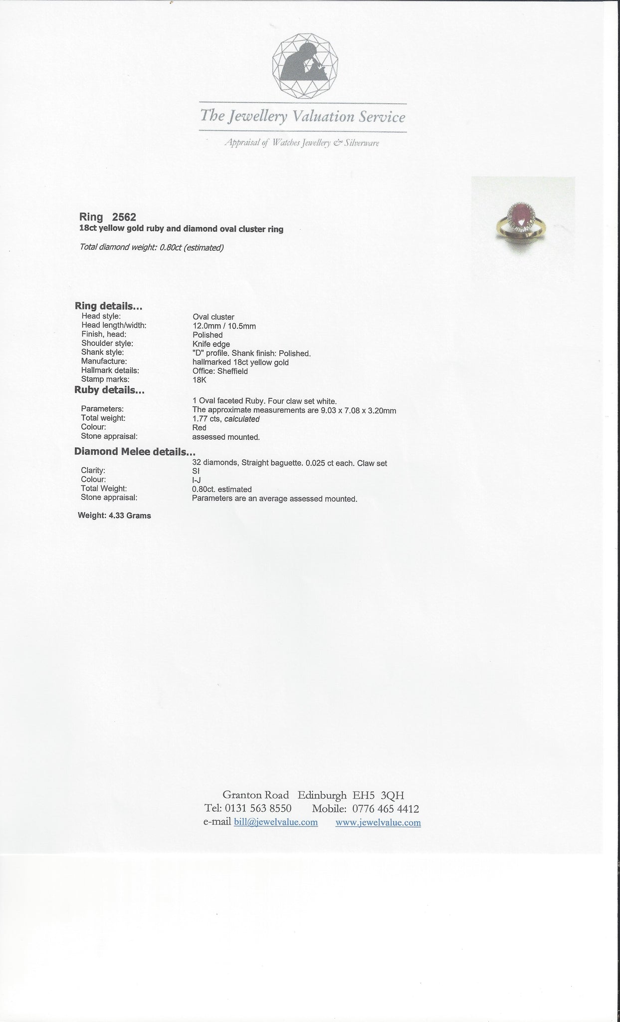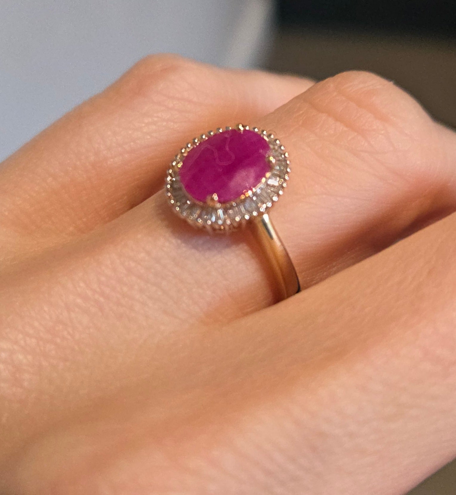 Stones: A Burmese ruby [1.77 carat] and thirty two diamonds [0.80 carat]