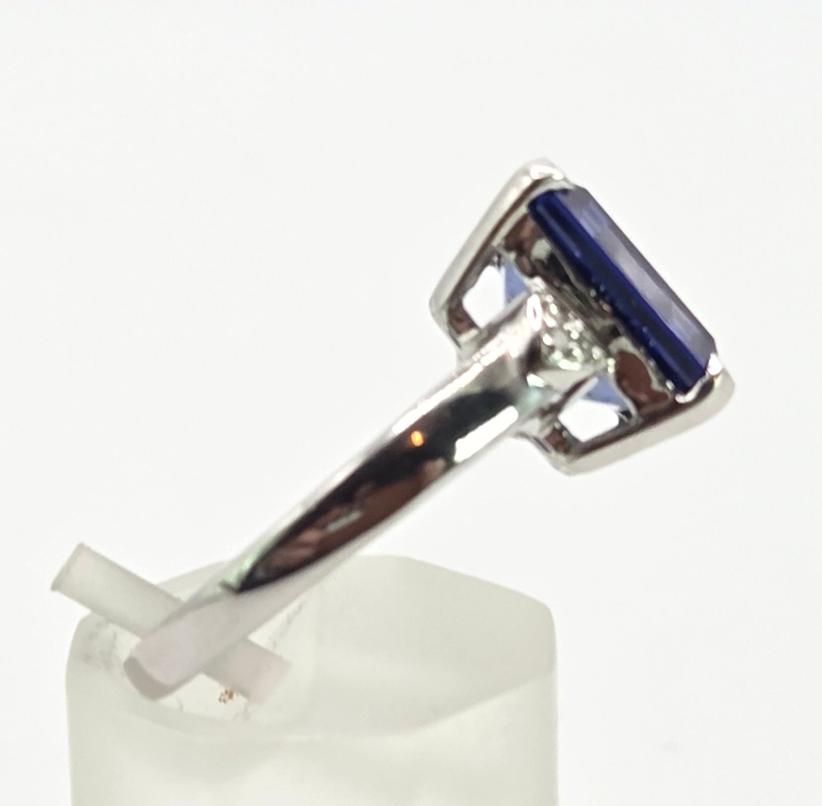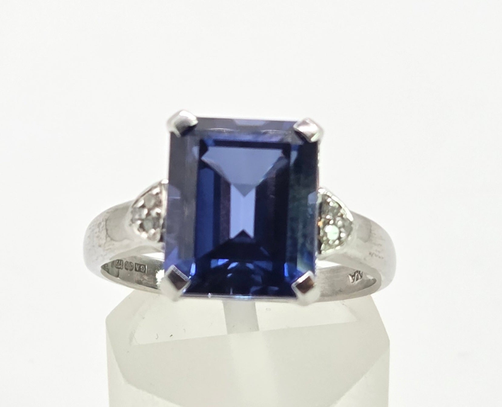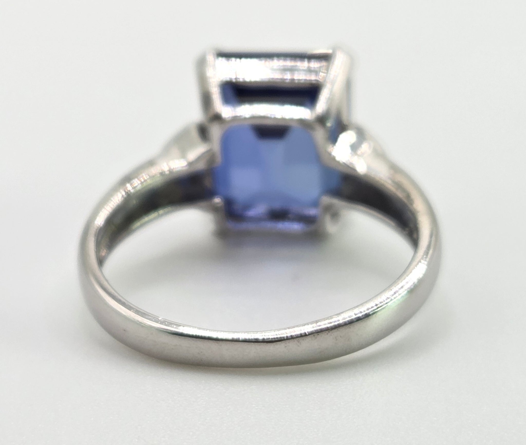 2607 Vintage: 9ct White Gold Emerald Cut French Blue Sapphire Diamonds Ring