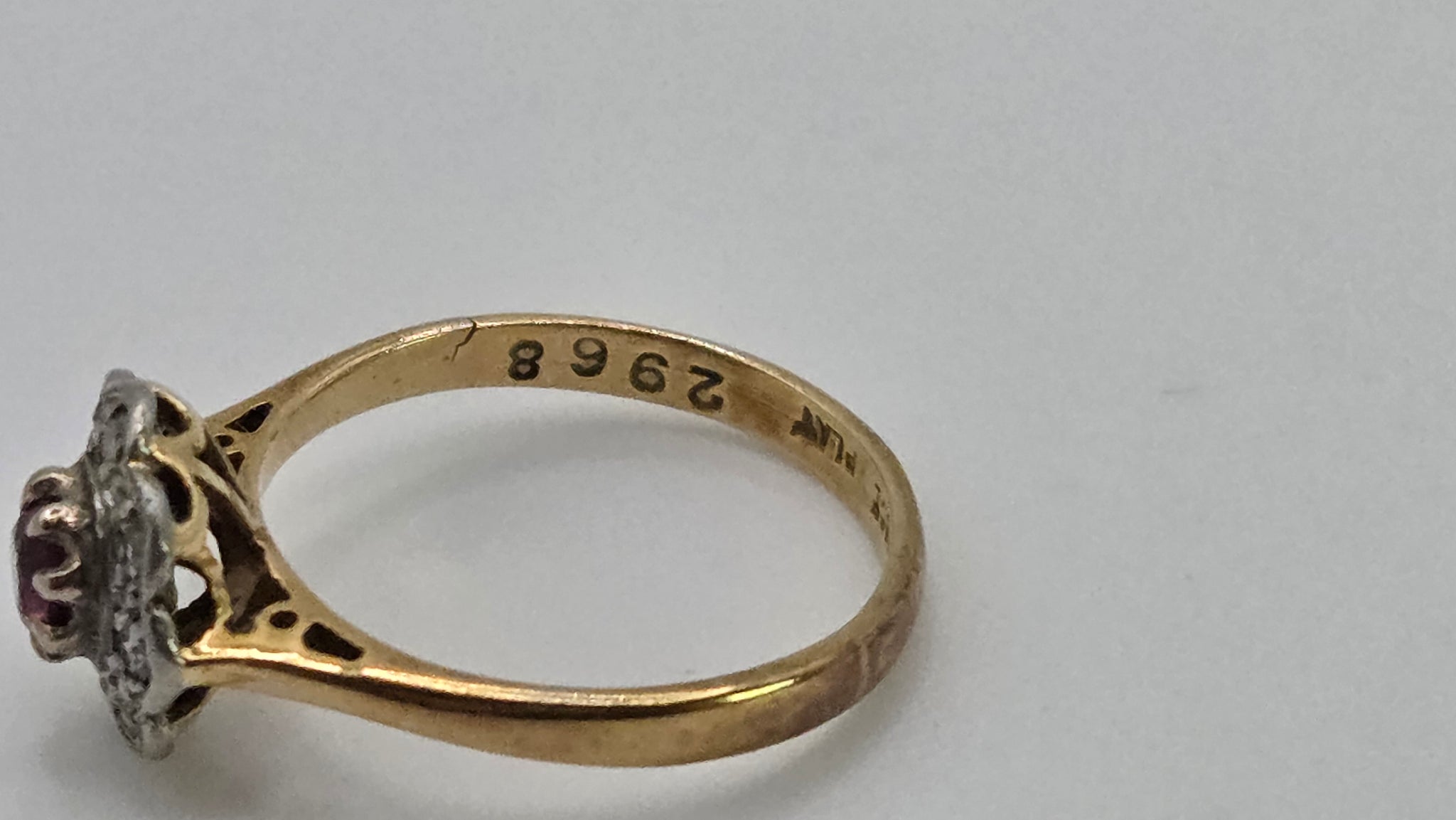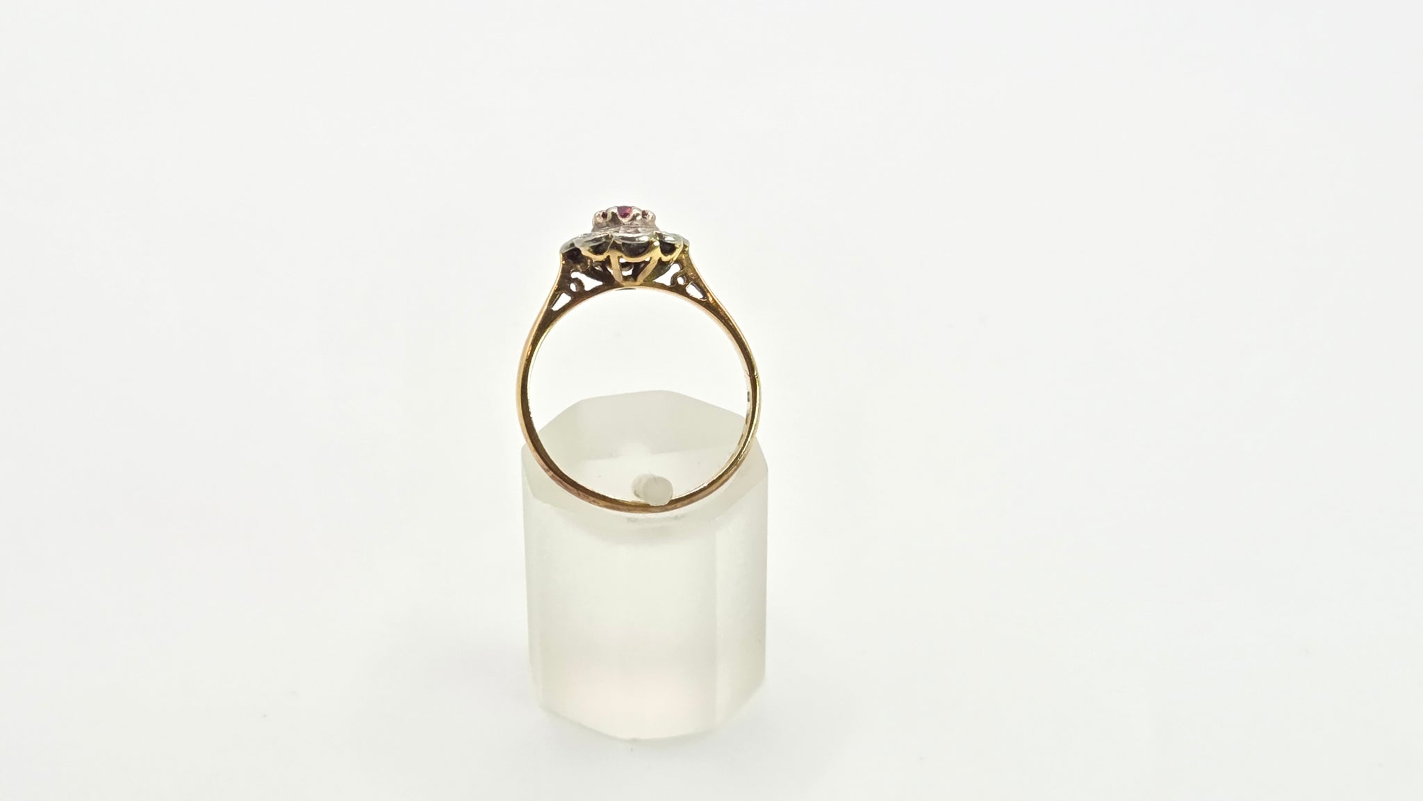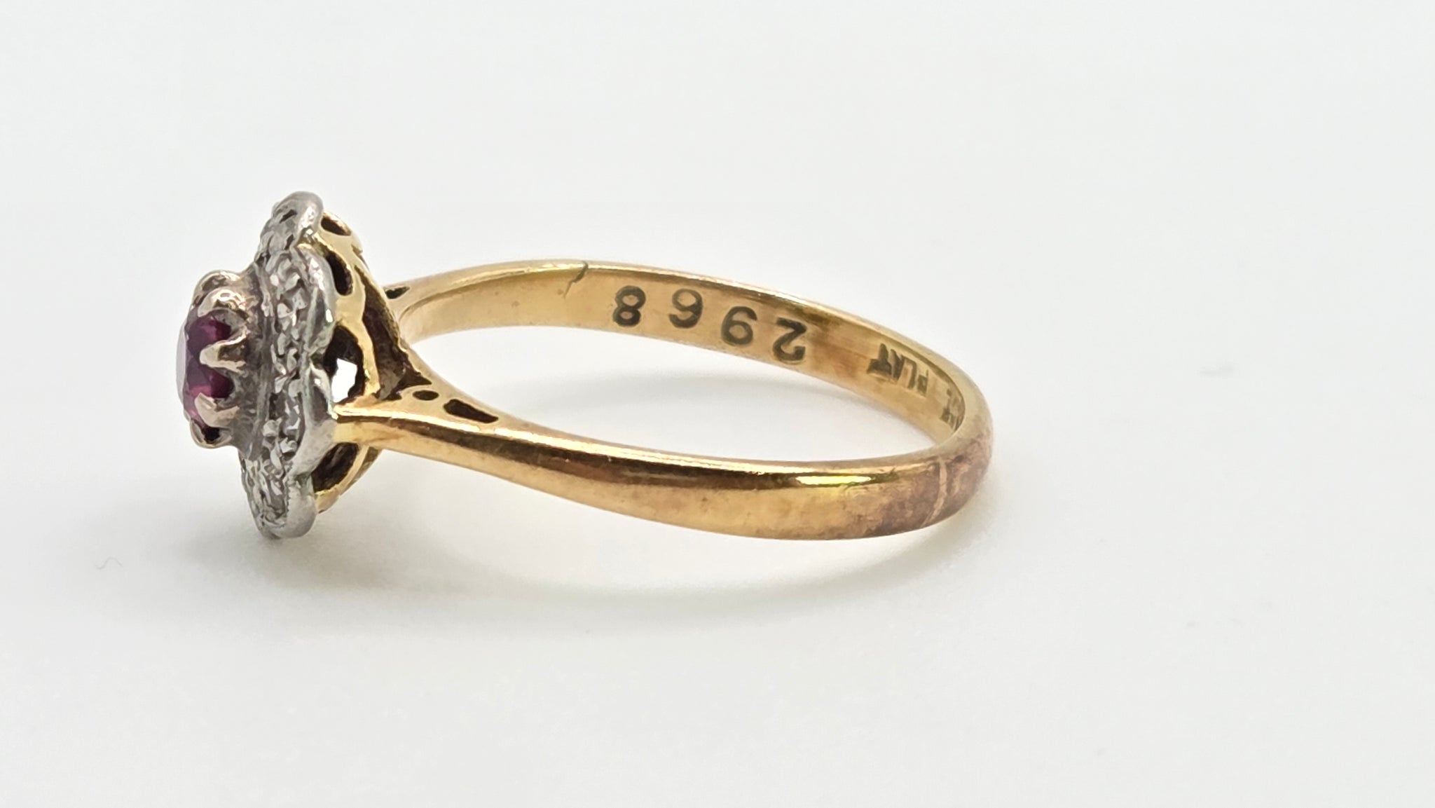 2978: Vintage 18ct Goad Ruby & Diamonds Daisy Flower Head Ring