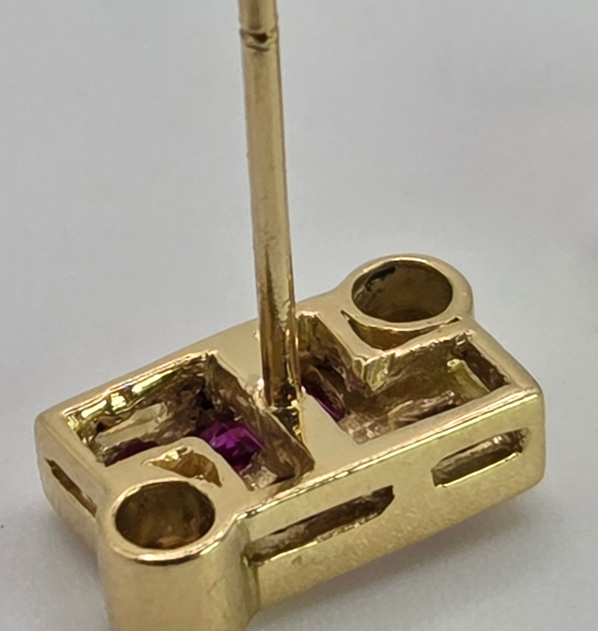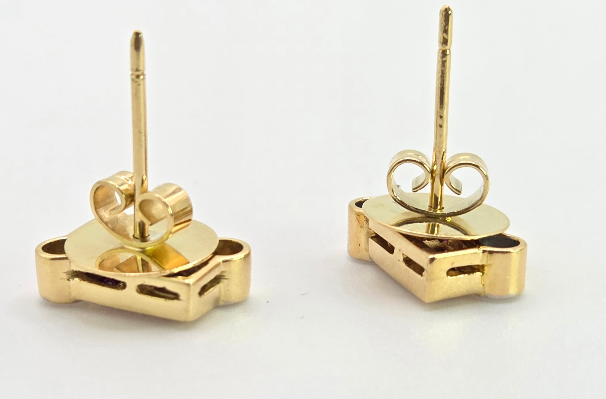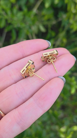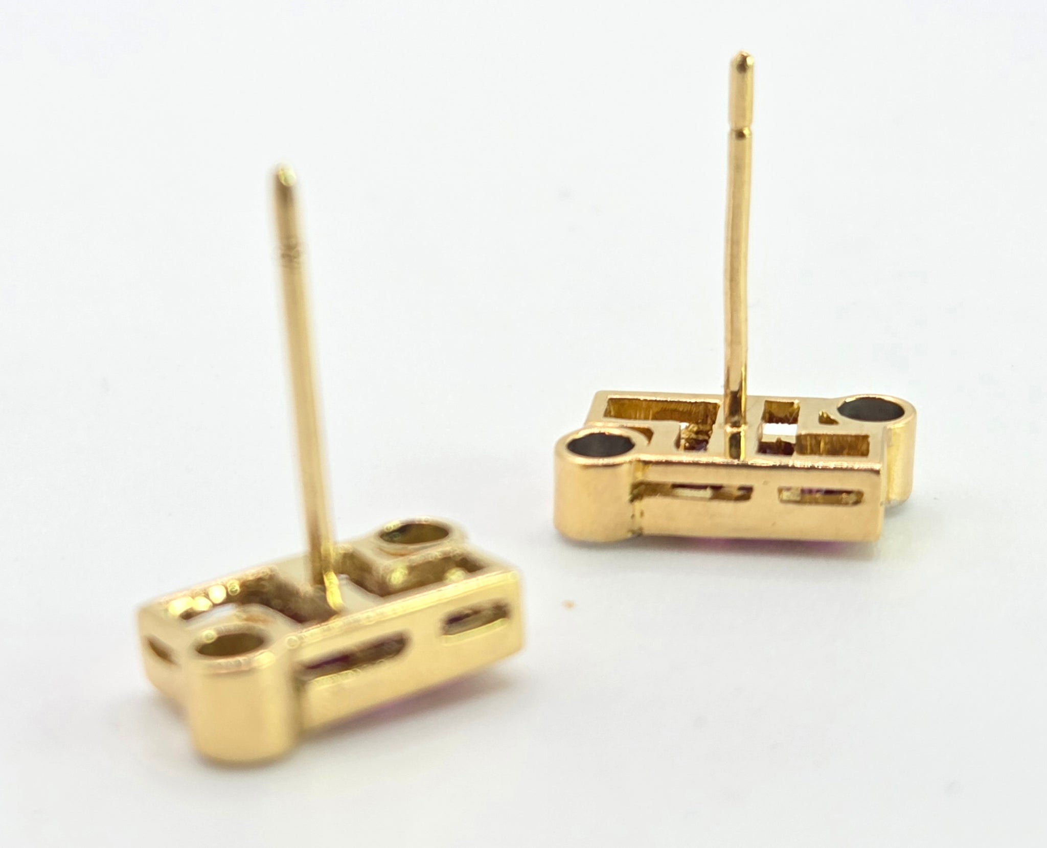 2727: Vintage 18ct Gold Rubies & Diamonds Geometric Set Stud Earrings