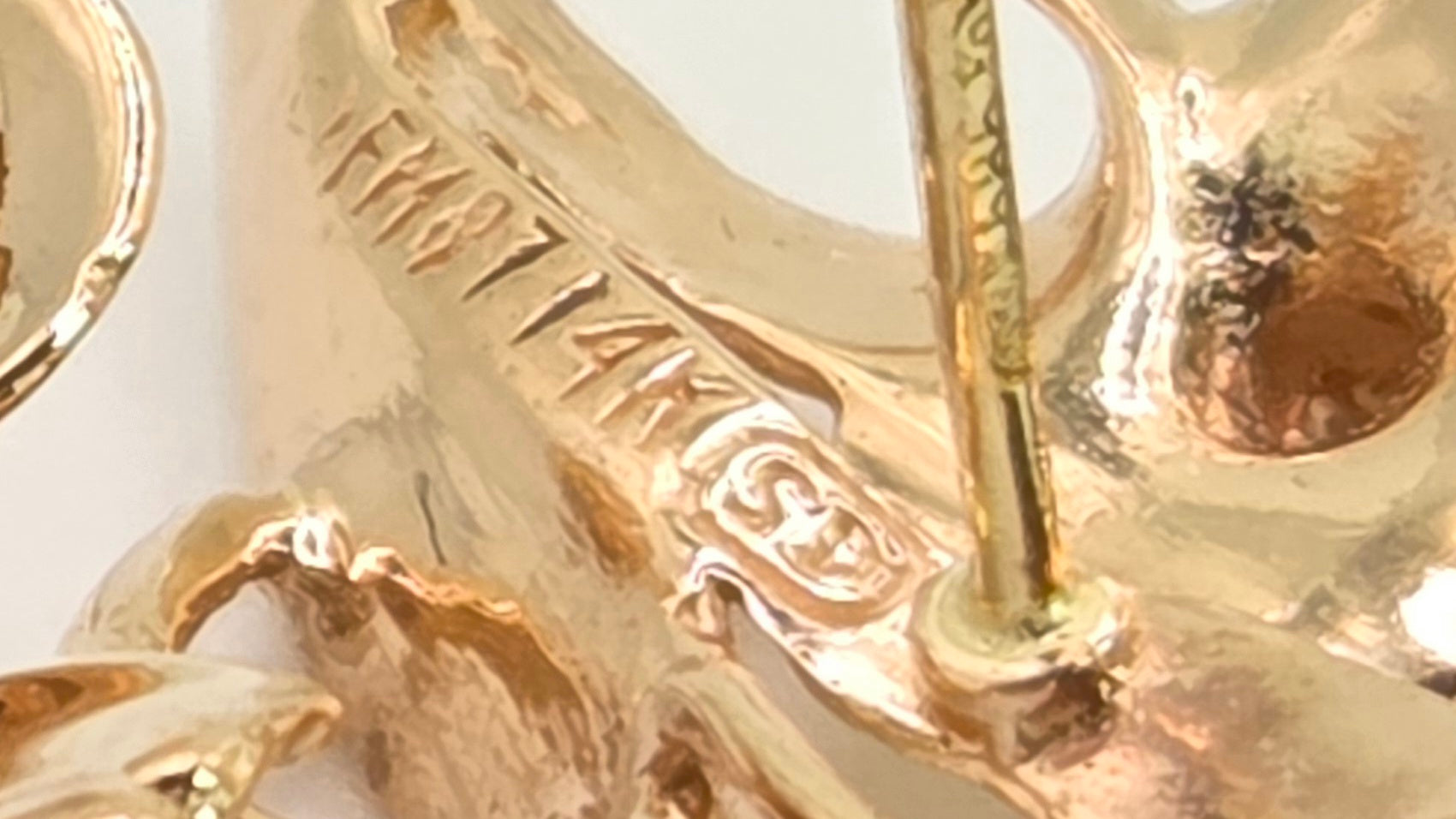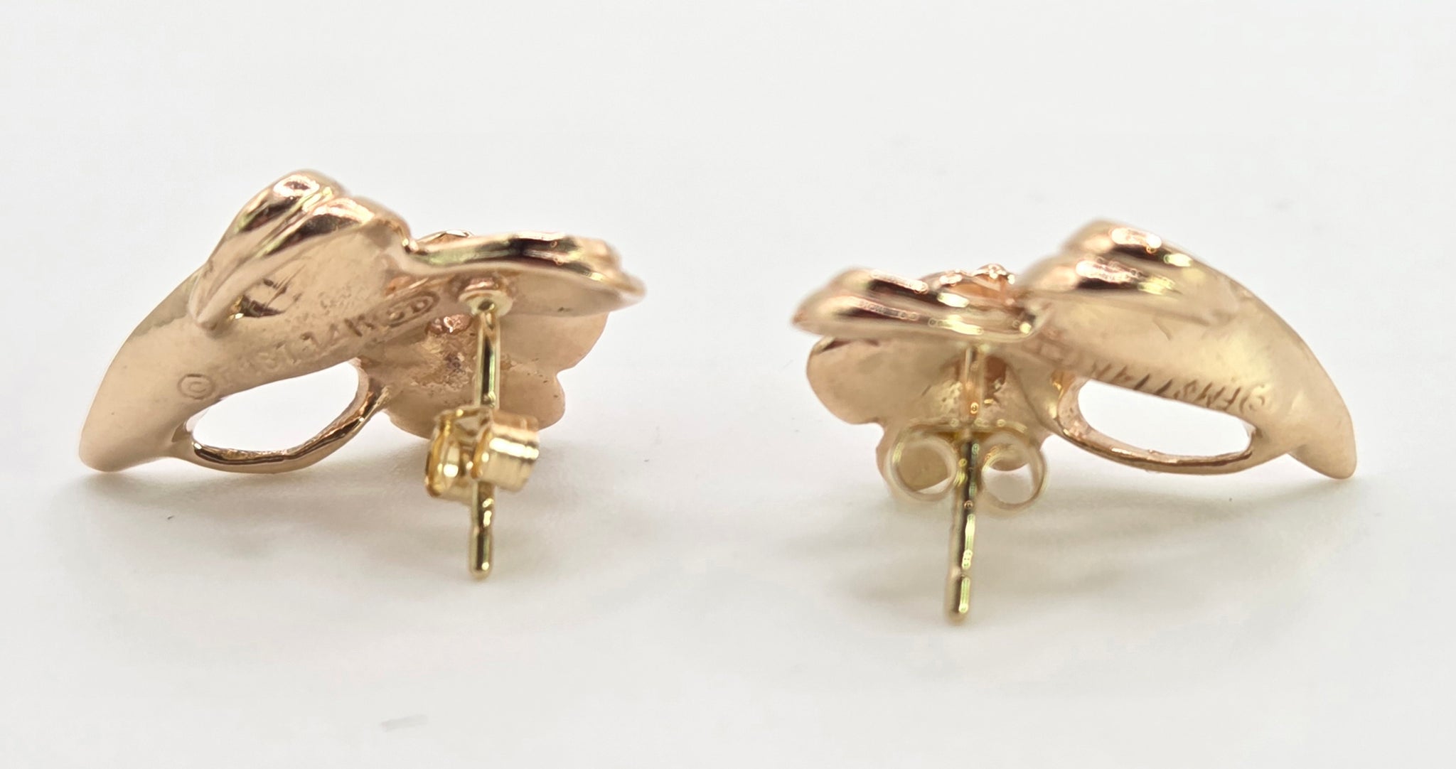 2758: Vintage 14ct Gold Round Full Cut Diamonds Floral Stud Earrings