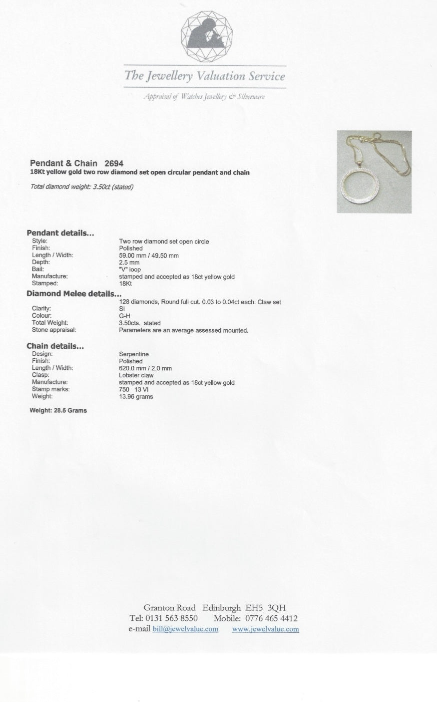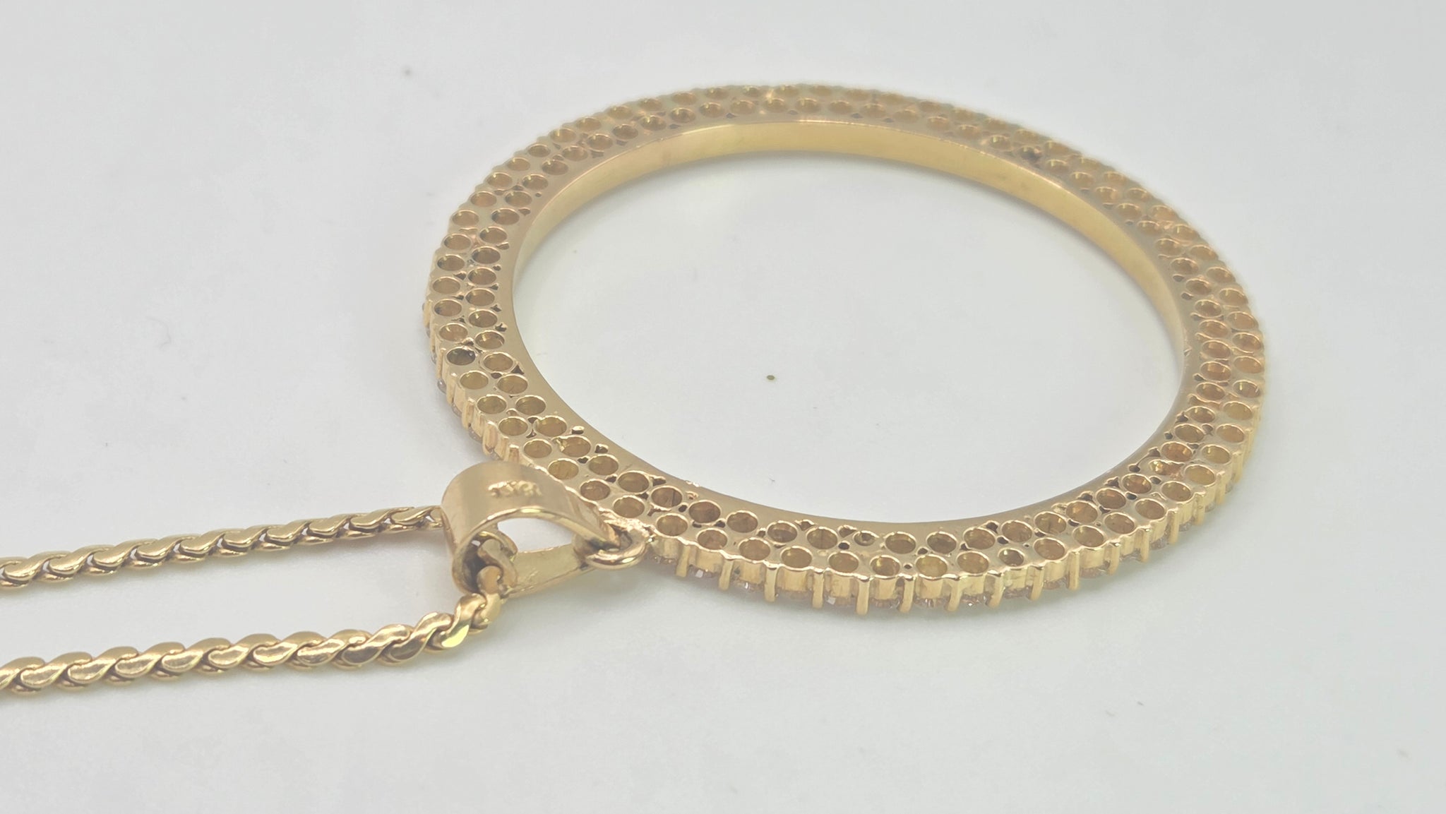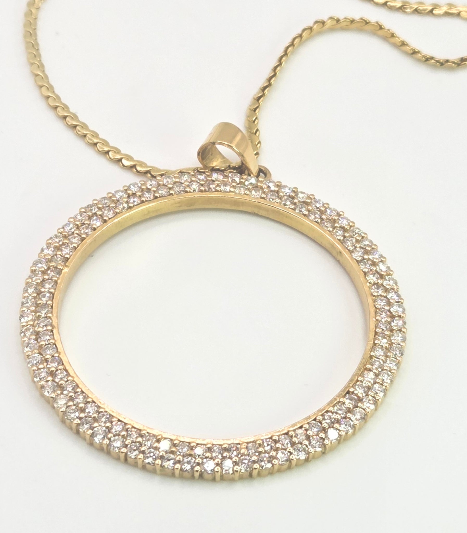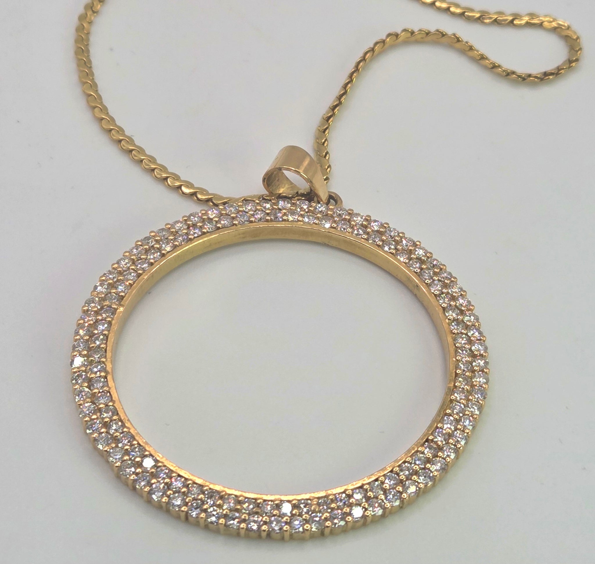 2694 Vintage 18ct Gold (3.5ct) Diamond Disc Pendant (4.9cm) & Necklace