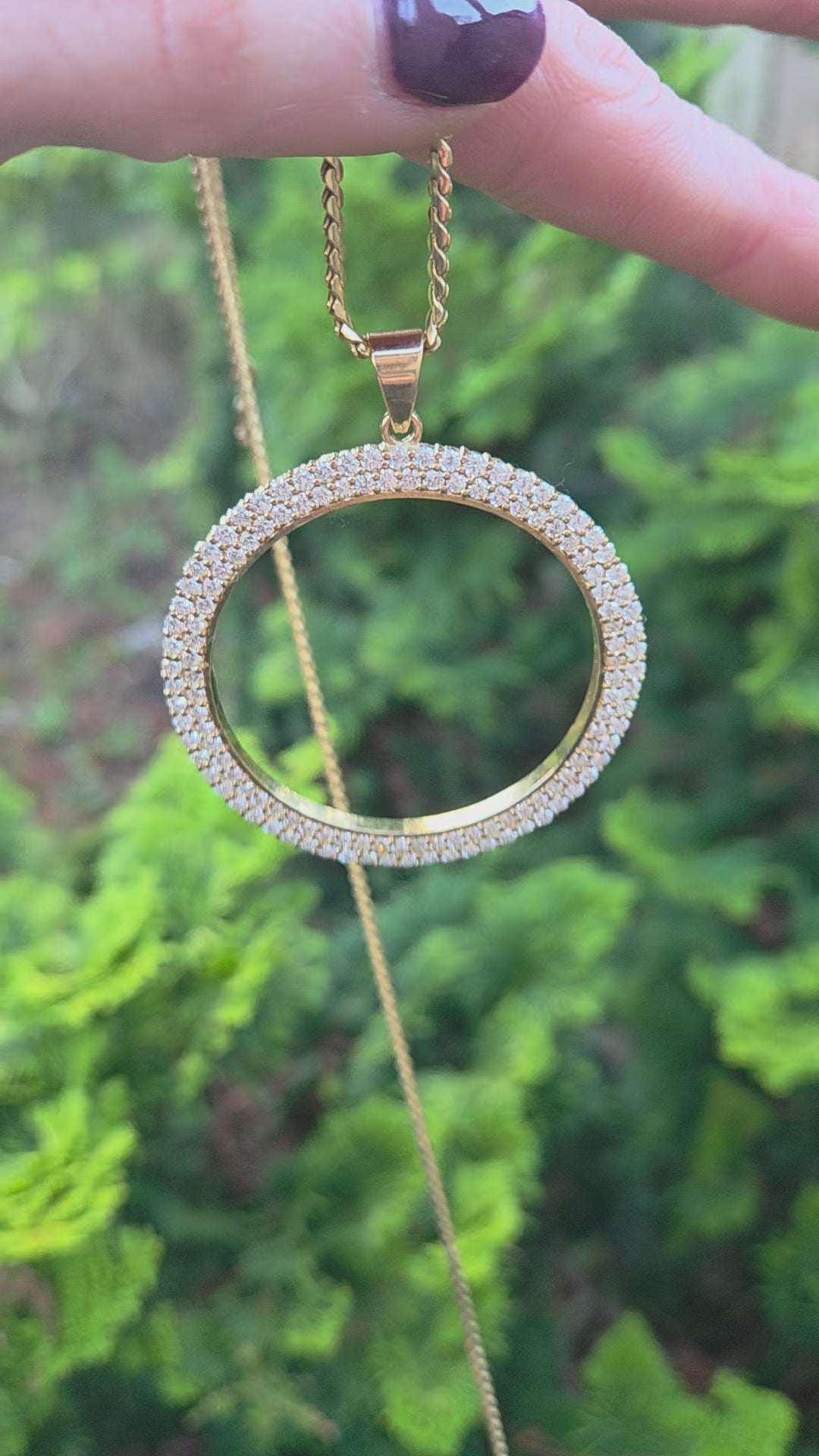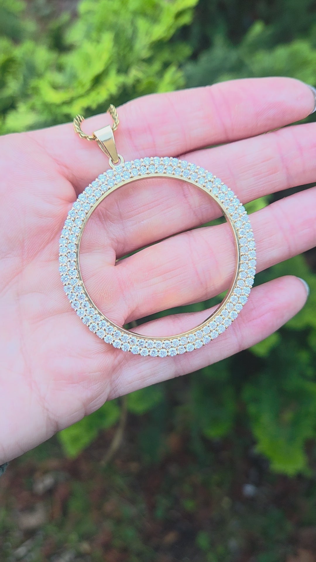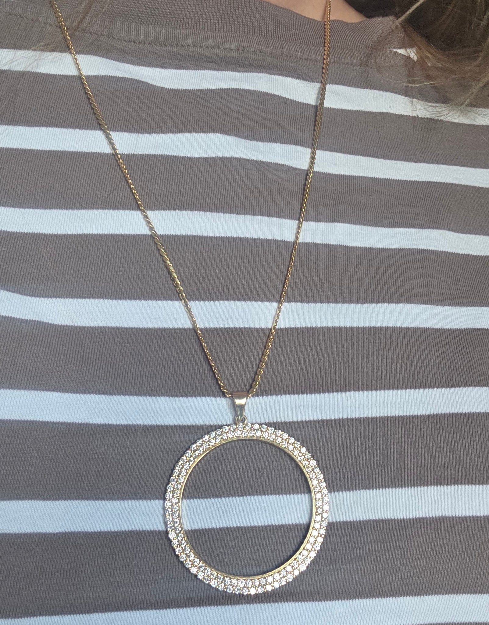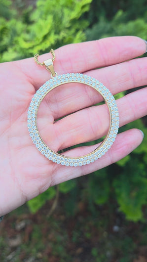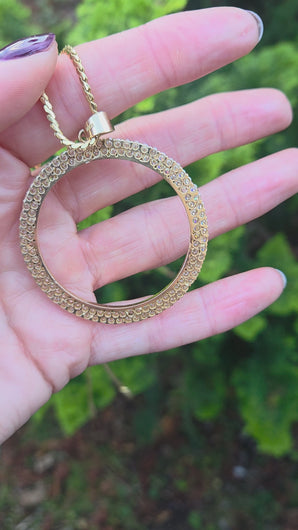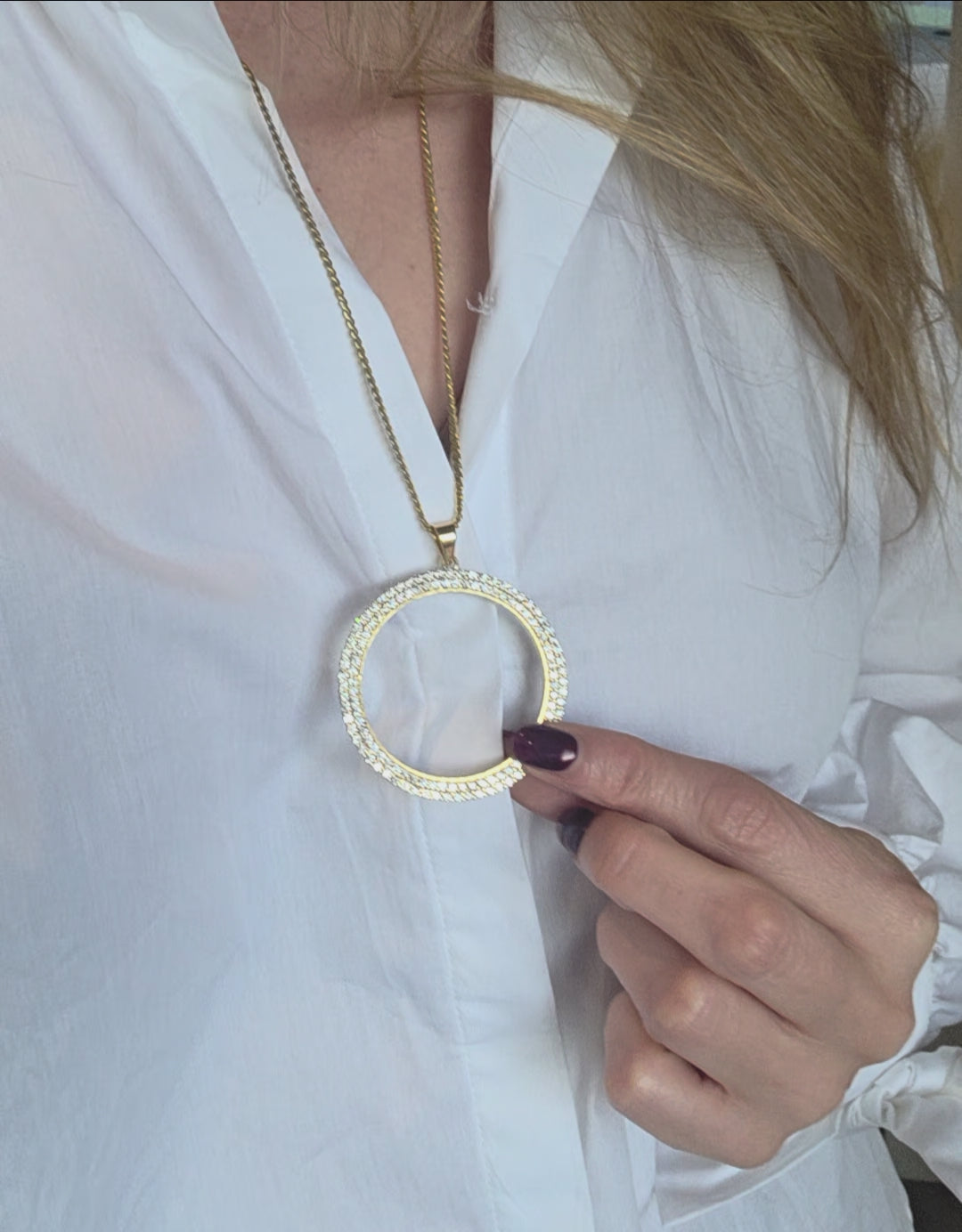 2694 Vintage 18ct Gold (3.5ct) Diamond Disc Pendant (4.9cm) & Necklace