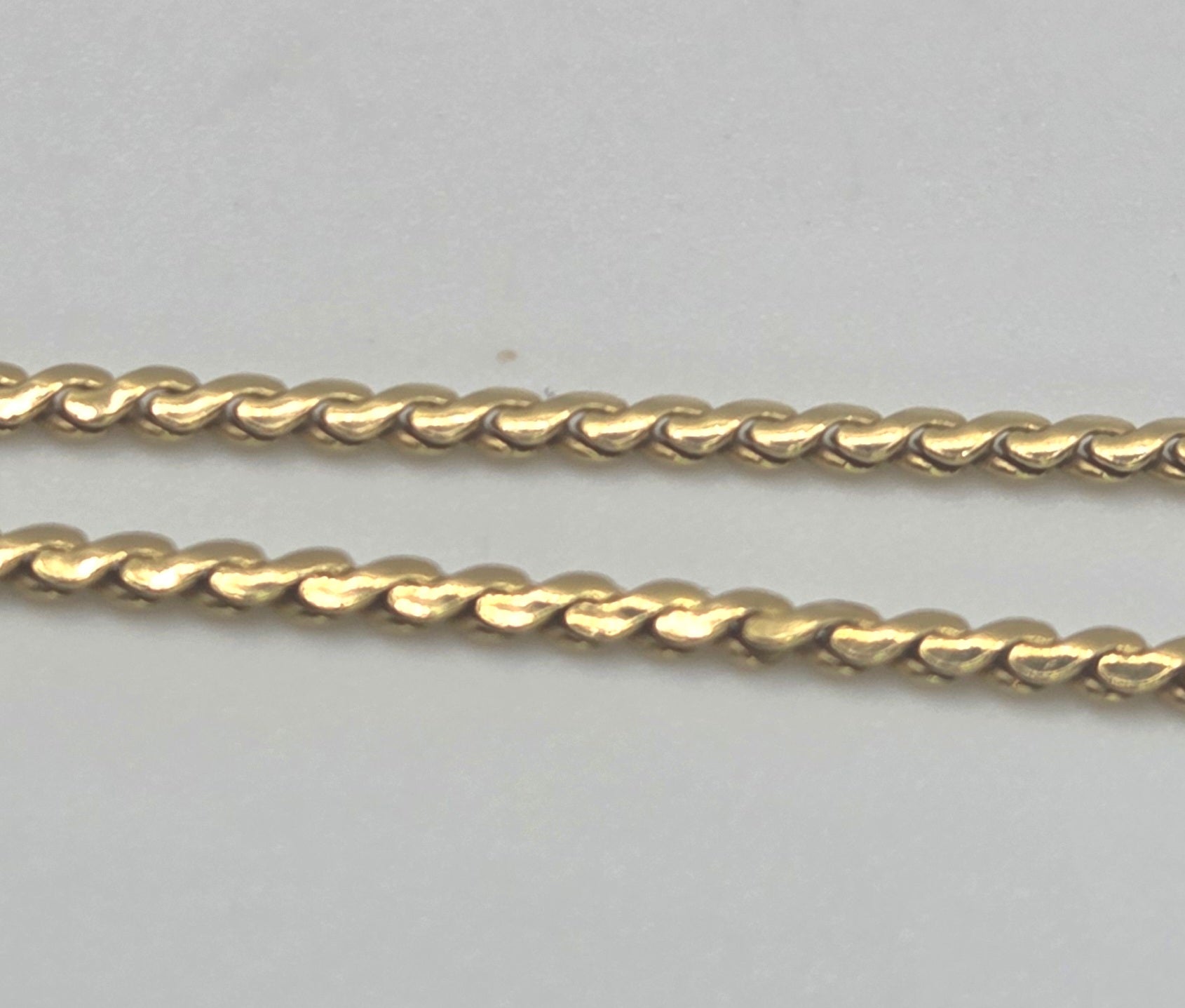 Completing the piece is a beautifully polished 18kt yellow gold serpentine chain featuring: