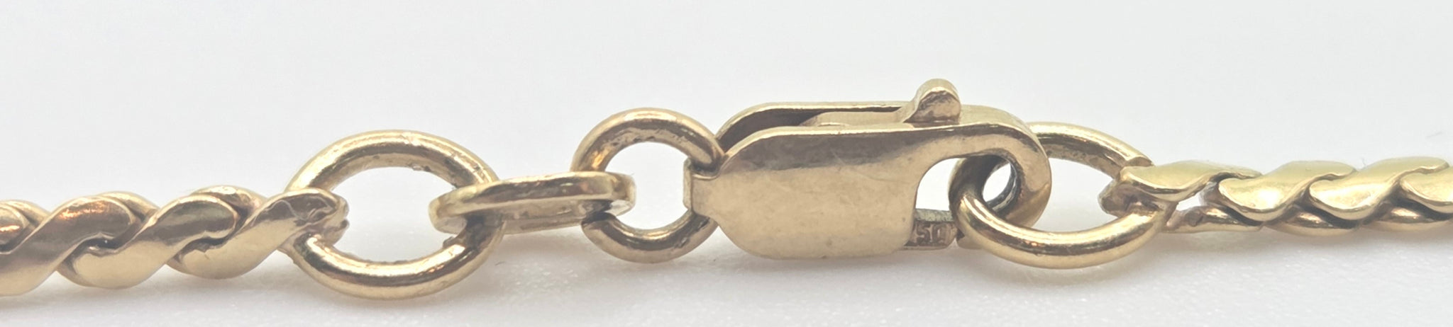 A secure and stylish “V” loop bail, stamped and verified as 18kt gold