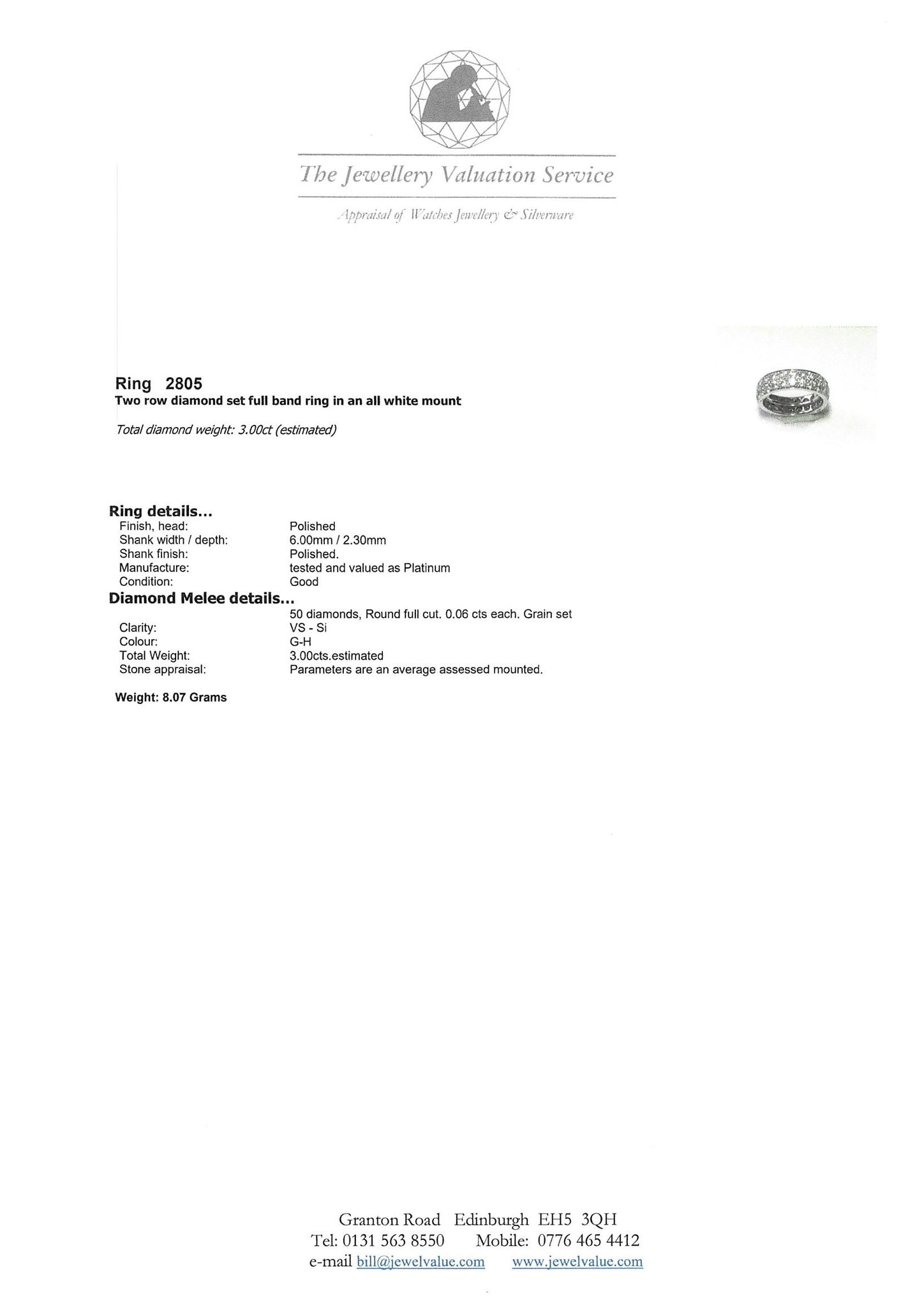 2805- Platinum Natural Full Round Cut Diamonds (3ct) Full Eternity Ring- Quite Amazing