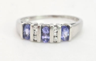 Vintage: 18ct White Gold Violet Blue Tanzanites Natural Diamonds Half-Hoop Ring