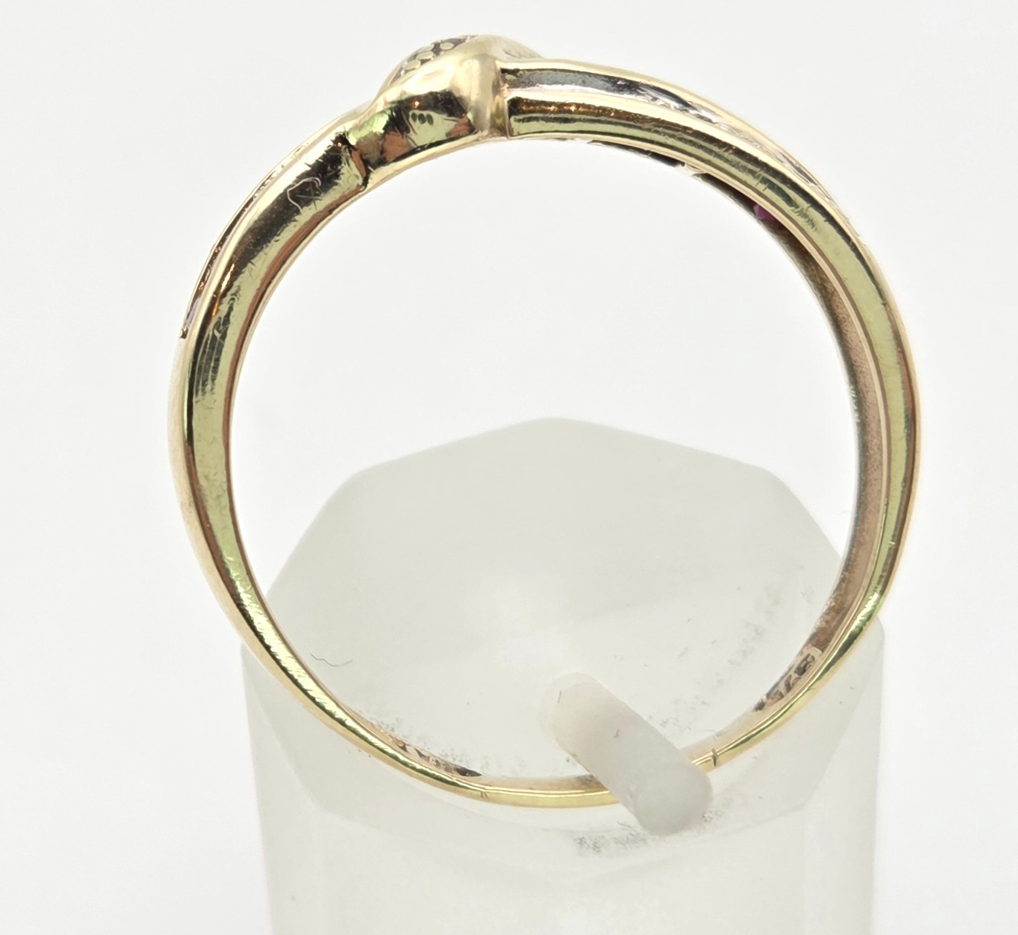• Load image into Gallery viewer, 2271 Vintage: 9ct Gold Rubies Natural Diamonds Crossover Dress/StackercRing