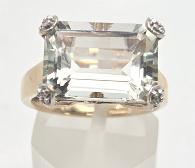 2392 Vintage: 9ct Gold Large Emerald Cut Aquamarine 16 Natural Diamonds Cocktail Ring![]()  - Regular price