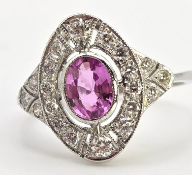 2479: Rare Platinum Pink Sapphire 20 Diamonds Art Deco Style Cluster Ring![]()  - Regular price