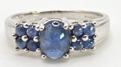 • 2513 Vintage: 9ct White Gold 9 Blue Sapphires Cluster Ring