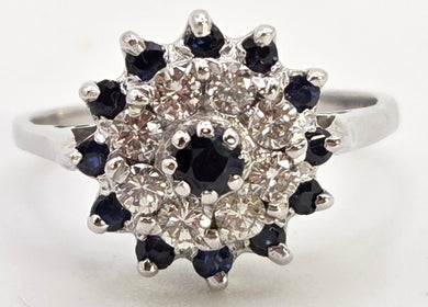 • 2511- Vintage: 18ct White Gold 13 Sapphires 8 Natural Sparkling Diamonds Cluster Ring- From 1975