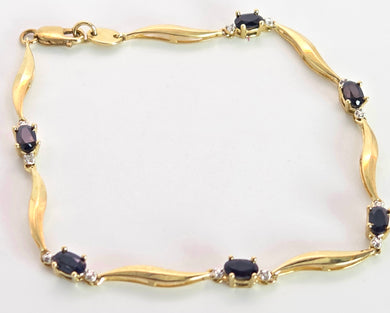 • 2382: Vintage: 9ct Gold Blue Sapphires Natural Diamonds Link Bracelet (18cm)