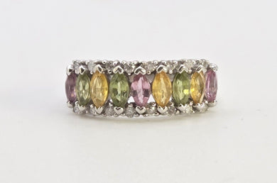 • 2505 Vintage: 9ct White Gold Pink & White Sapphires Statement Ring